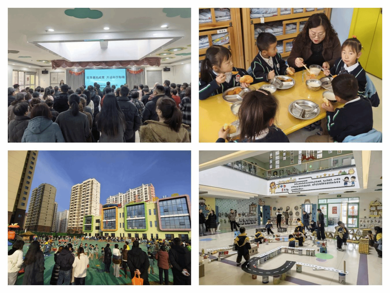 家长们从晨接环节牵着孩子的手有序入园,到静静聆听孩子们分享趣事的晨谈时光,再到跟随欢快音乐见证孩子活力满满的上操时刻,全程沉浸式参与孩子在园生活。早操结束后,每班邀请的家长代表陪同孩子共进早餐,见证孩子自主排队取餐、整洁用餐的成长瞬间。早餐时间,同步组织全体大班家长参加了大班幼小衔接及保教费减免政策解读会议,园长王燕为家长们作了详细宣导。早餐过后,家长们在集教活动中观察到了孩子积极互动、大胆表达的课堂表现,在“阳光运动1+1”环节看到了孩子们蹦跳轻快、元气满满的运动画面,在区角活动中见证孩子自主探索、动手创作的专注模样,走进功能室感受孩子探索新奇、发挥创意的快乐,在参观厨房的过程中感叹操作间的干净整洁、操作流程的规范严谨。