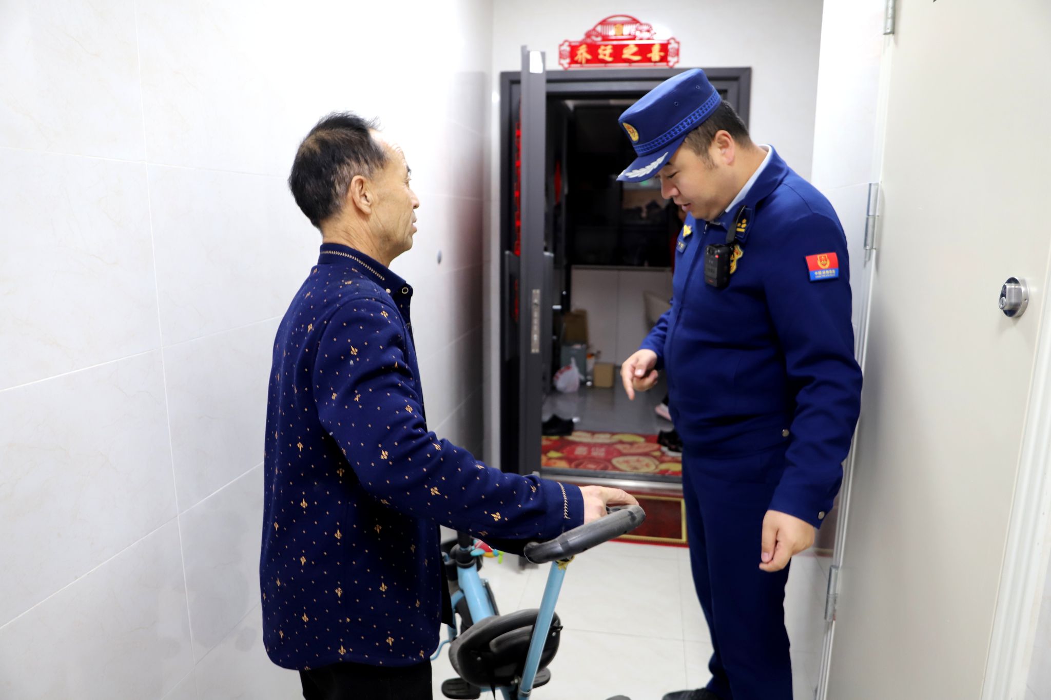 此次行动以楼梯间、安全出口、疏散通道等关键区域为重点,采取 “拉网式” 逐栋逐层排查,重点整治堆放杂物、电动自行车违规停放充电、防火门损坏、疏散指示标志不清等问题。针对排查发现的隐患,工作人员实行“即查即改+ 限期督办”模式,现场协助居民清理可立即移除的杂物,对无法当场整改的下达整改通知,明确整改要求与时限。同时,工作人员同步开展“敲门入户”宣传,发放消防宣传资料,结合典型火灾案例细致讲解堵塞逃生通道的严重危害及相关法律后果,普及《消防法》中关于疏散通道管理的规定,引导居民自觉清理私占物品,共同维护“生命通道”畅通。“楼道杂物清干净了,走路都顺畅,心里也更踏实了!” 辖区居民的认可道出了此次行动的成效。