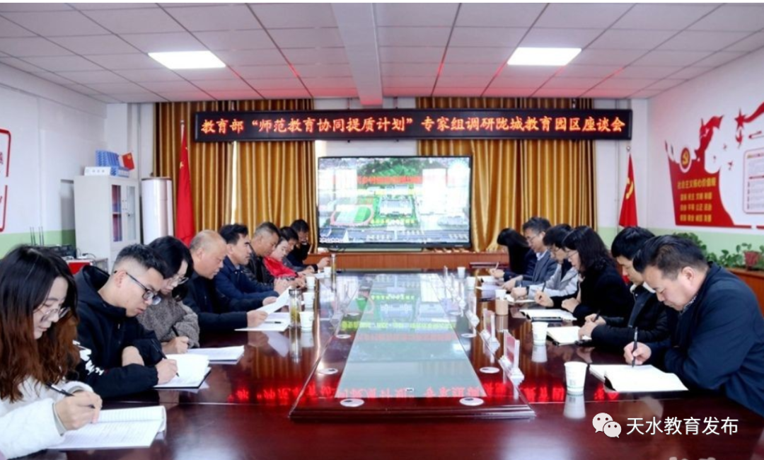 在召开的座谈会上,陇城学区负责人汇报了“园区+走教”工作开展情况;专家组与毕业于天水师范学院的陇城学区教师进行了交流。