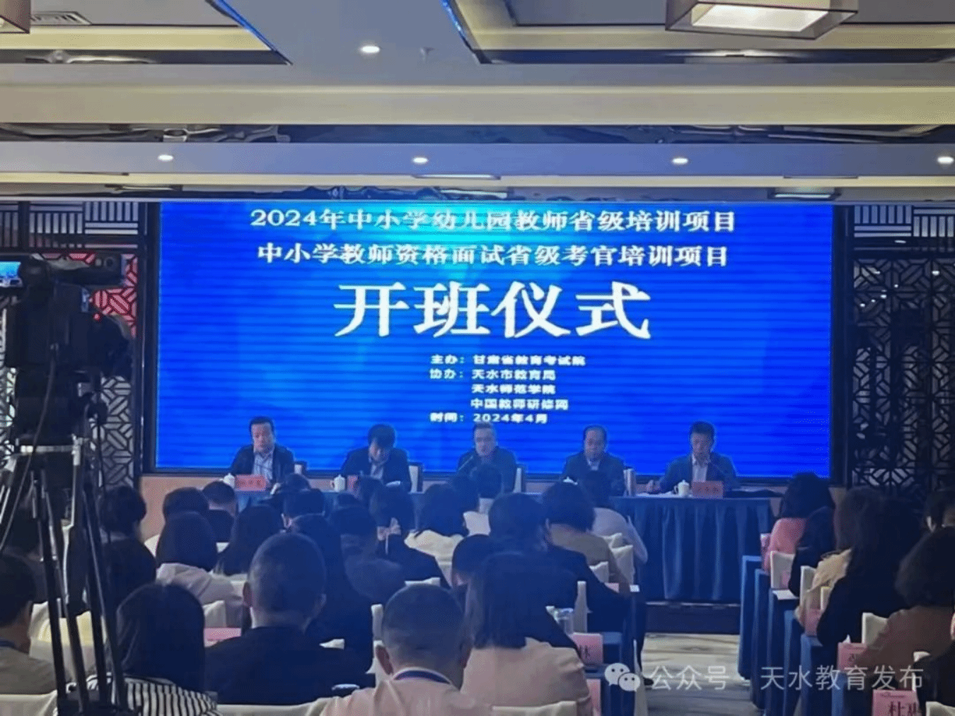 甘肃省教育考试院党委委员、副院长张永,天水市教育局党组书记、局长杨瑞峰,甘肃省国培计划项目管理办公室主任王孝军,天水市师范学院教务处处长杨学良等出席会议并讲话。甘肃省教育考试院社会考试处处长薛智强主持开班仪式。