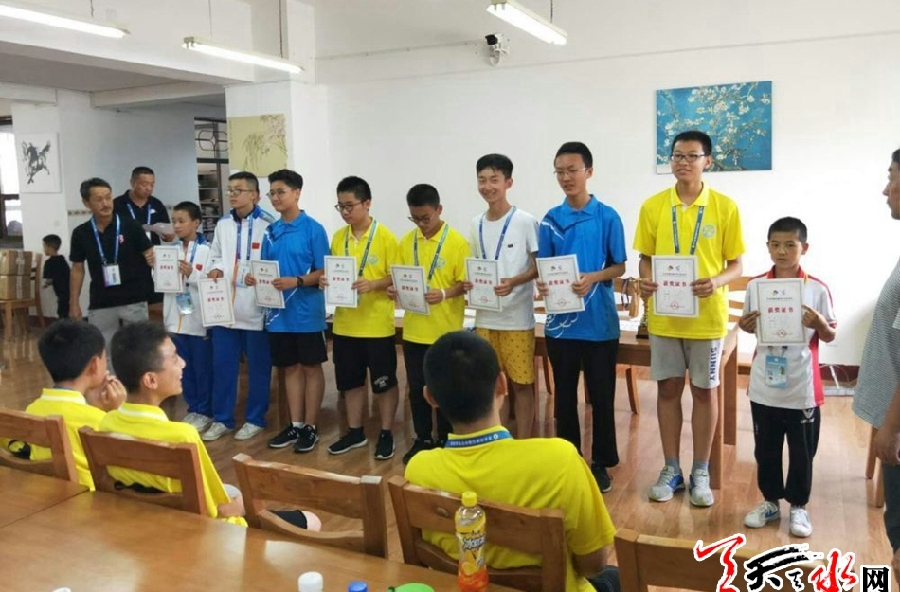 天天天水网讯【记者 张文都】8月10日下午,为期三天的天水市第五届中学生运动会象棋比赛在天水市一中阅览室精彩落幕。经过七轮激烈比拼,天水市逸夫中学代表队夺取团体冠军,该代表队选手罗文钊以五胜二和的不败战绩勇夺个人桂冠。