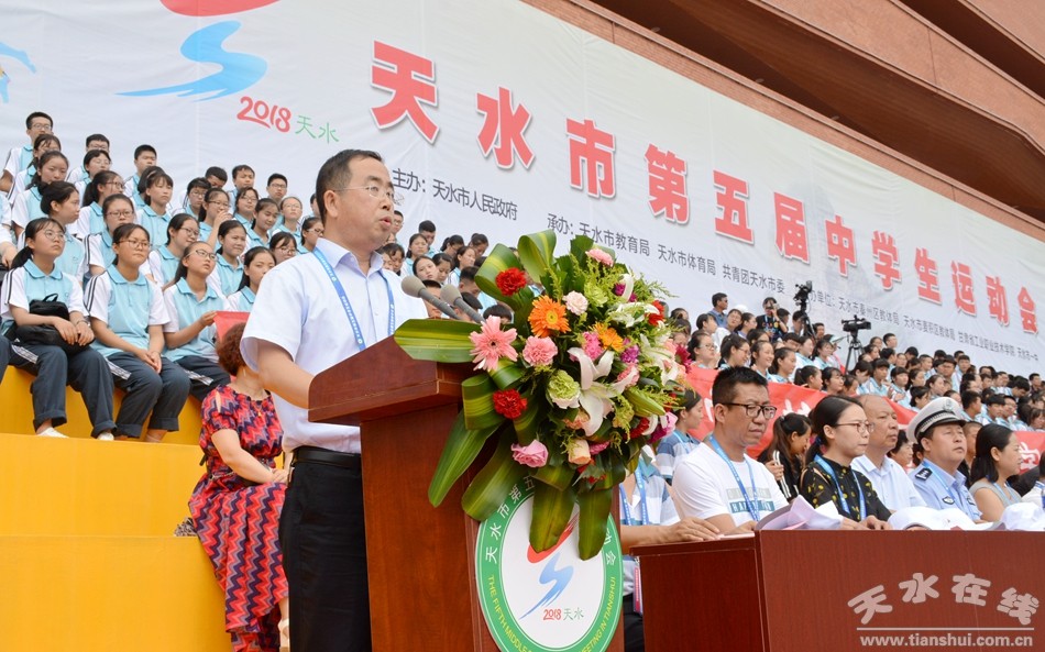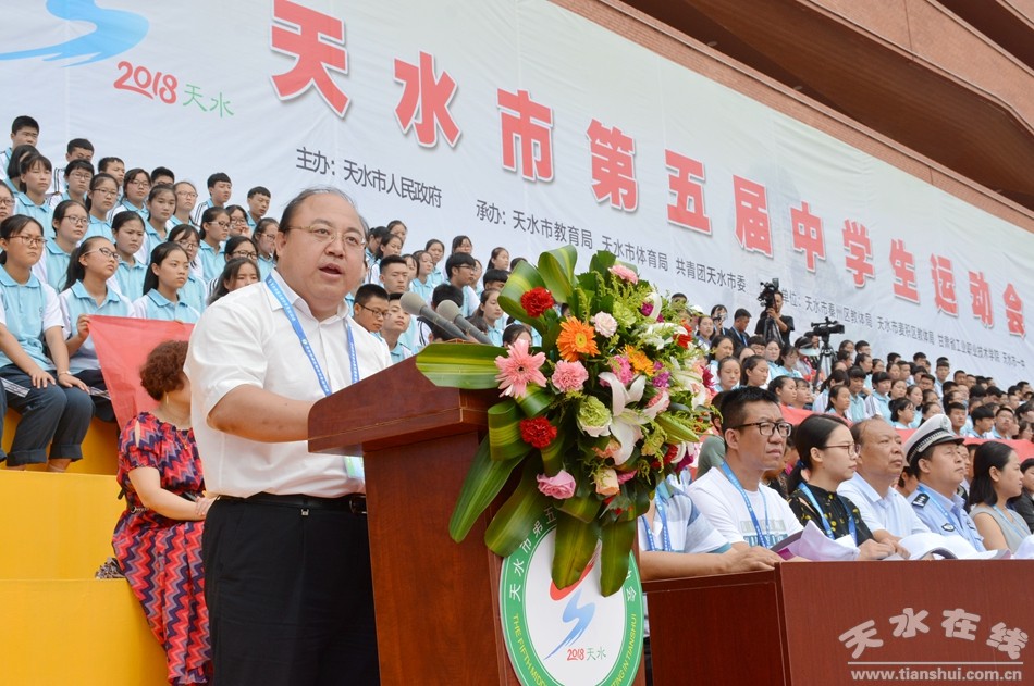 8月8日上午,由天水市人民政府主办,天水市教育局、天水市体育局、共青团天水市委承办的天水市第五届中学生运动会开幕式在天水一中麦积校区隆重举行。