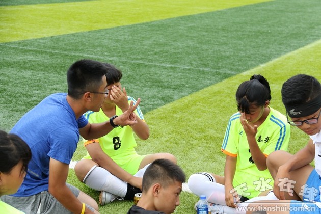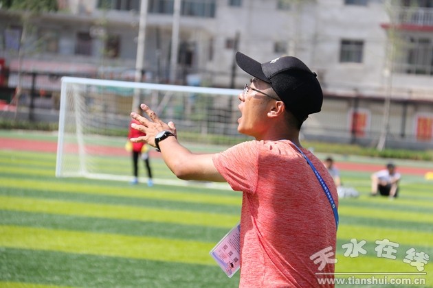 全市第五届中学生运动会暨“市长杯”2018年青少年校园足球冠军杯赛中学组比赛于7月31日上午开赛,秦安县队首场比赛和秦州区打成2:2,该队教练徐安达在场外来回跑动给孩子们递水、给受伤运动员喷药治疗、指挥运动员打比赛,离场时又帮着孩子们拿东西,还为孩子们加油鼓劲。