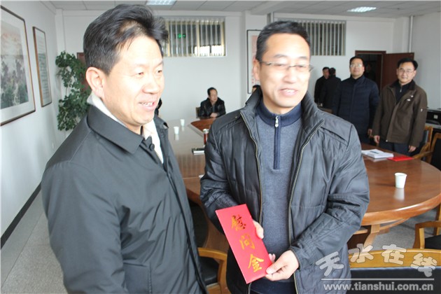 最后,张主席还亲切慰问了天水一中的两位教师代表石志学和马宗义,并通过他们向全校教职工拜年。