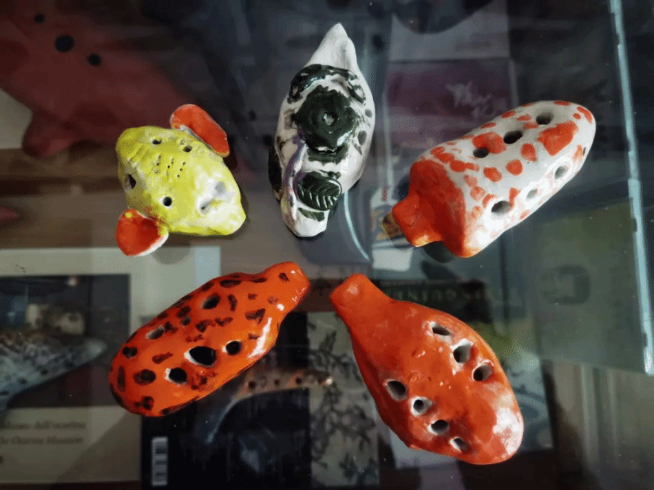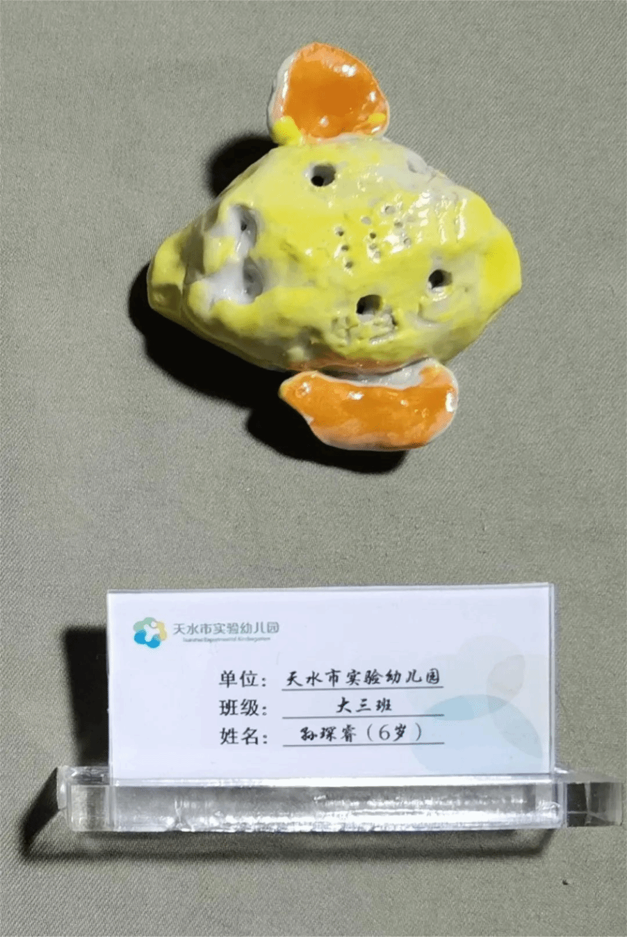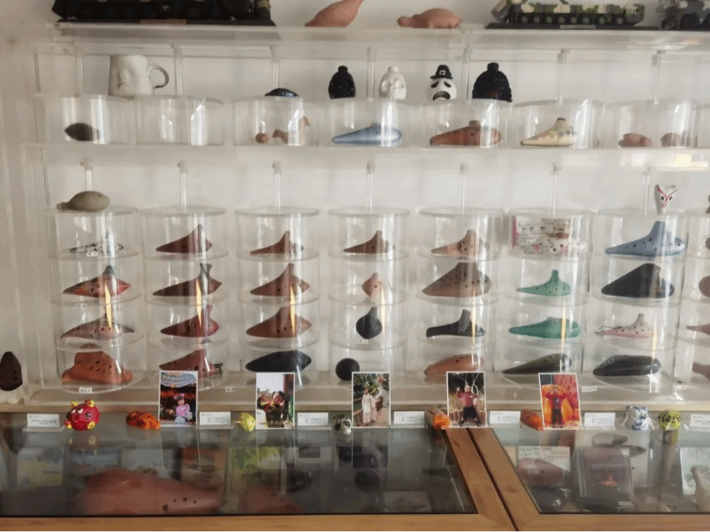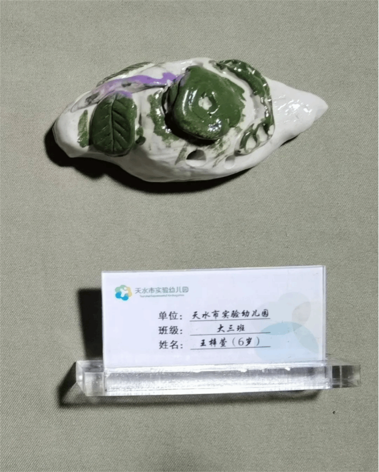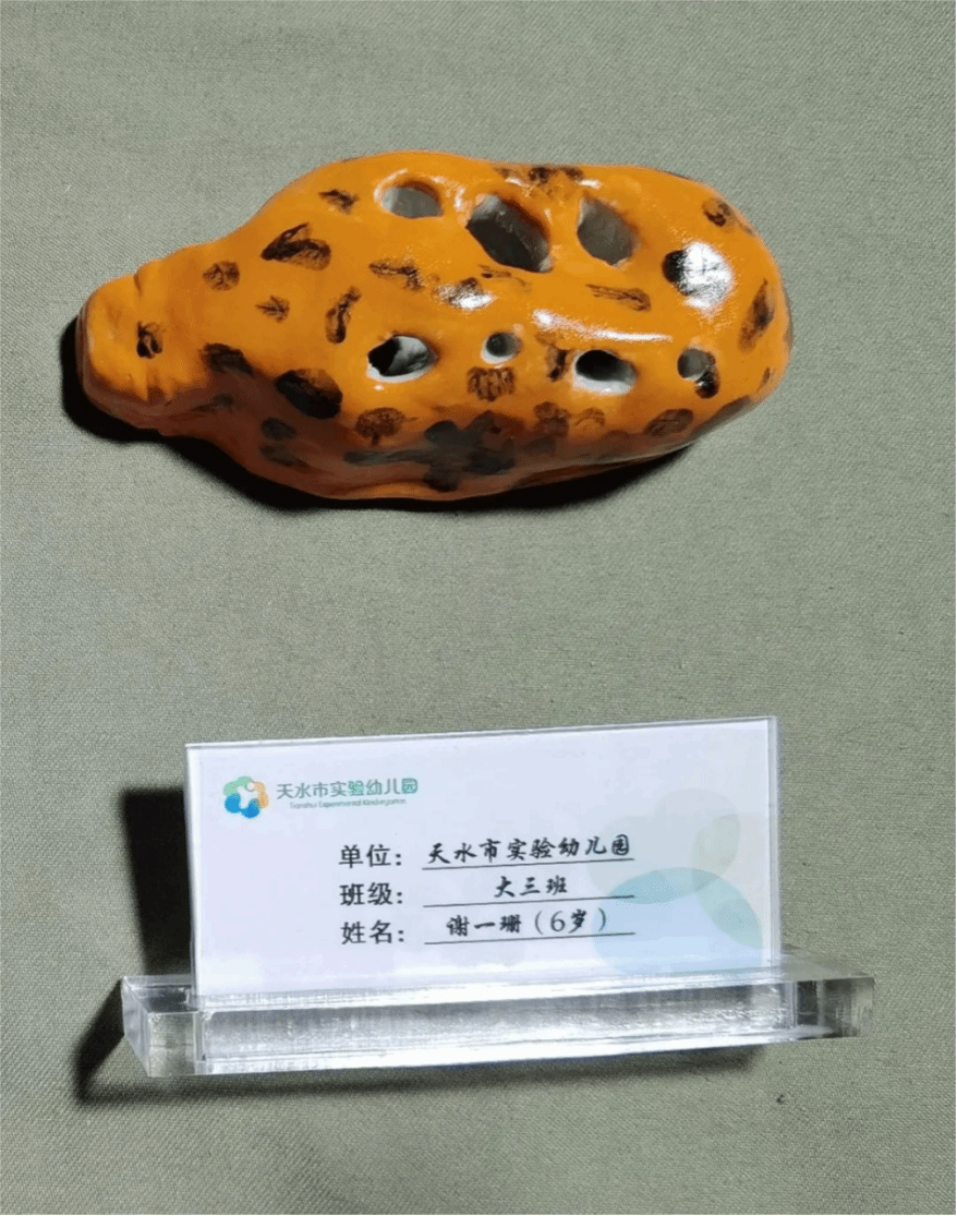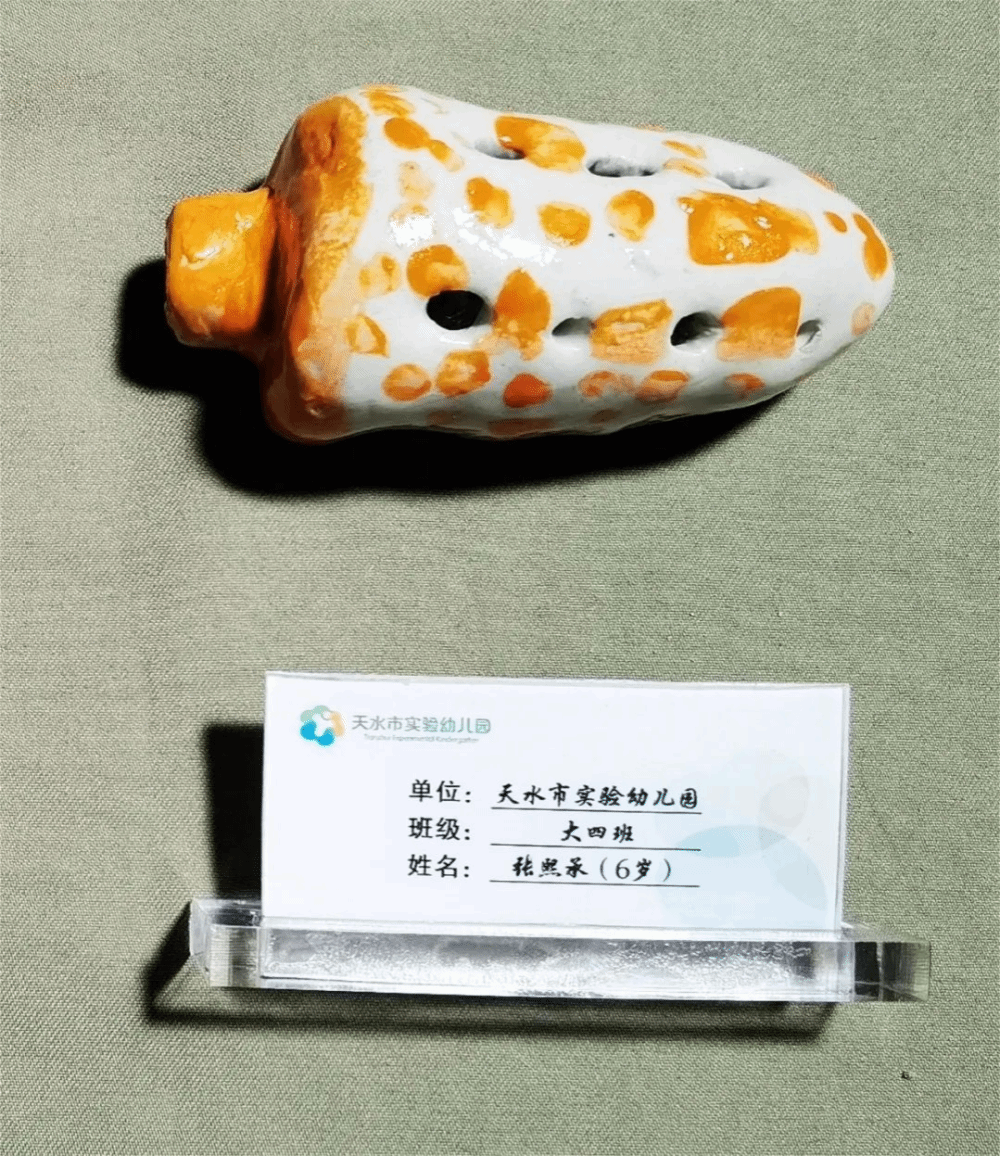 天水市实验幼儿园小朋友张熙承、谢一珊、孙琛睿、卫铠郡、王梓萱五位小朋友的泥哨作品代表实验幼儿园在世界埙哨博物馆展出。