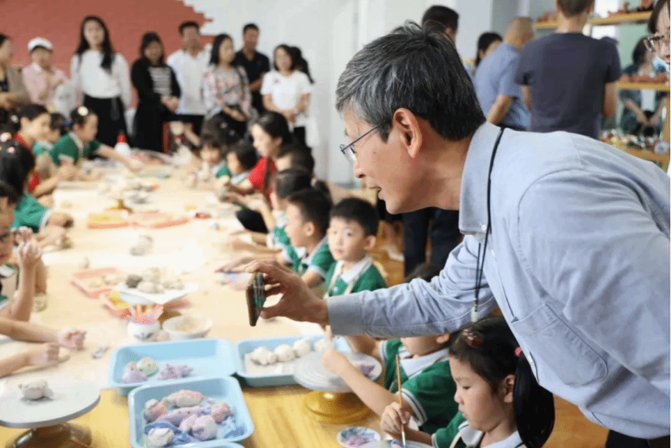 在泥哨非遗传承人、世界埙哨博物馆馆长张宗沛先生,意大利著名陶笛演奏大师法比欧先生进行的泥哨活动回访中,实幼小朋友通过灵巧的小手对非遗文化的展现,深深地吸引了张老师,他将孩子们的泥哨作品带回博物馆收藏并展出。