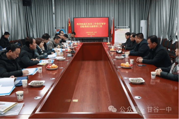 1月5日,天水市第三中学教育考察团一行20余人在校长朱艳萍的带领下,深入甘谷一中开展观摩交流活动,全面了解学校教育教学和教研教改各项工作。甘谷一中党委书记张贤、校长蔺世全及相关领导热情接待了考察团一行,并全程陪同观摩交流活动。考察团一行通过参观校园、听取介绍、交流座谈、翻阅资料、实地观摩等多种形式,对甘谷一中教育教学、教研教改、高考备考等重点工作进行了全面的了解,两校领导就共同关注的教育改革等问题进行了深入的交流。