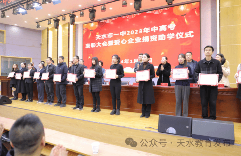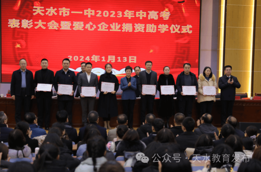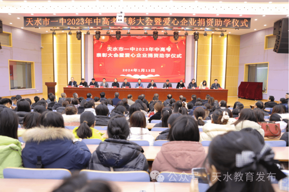 1月13日,天水市一中2023年中高考表彰大会暨爱心企业捐资助学仪式举行。副市长汪小娟出席并讲话。
