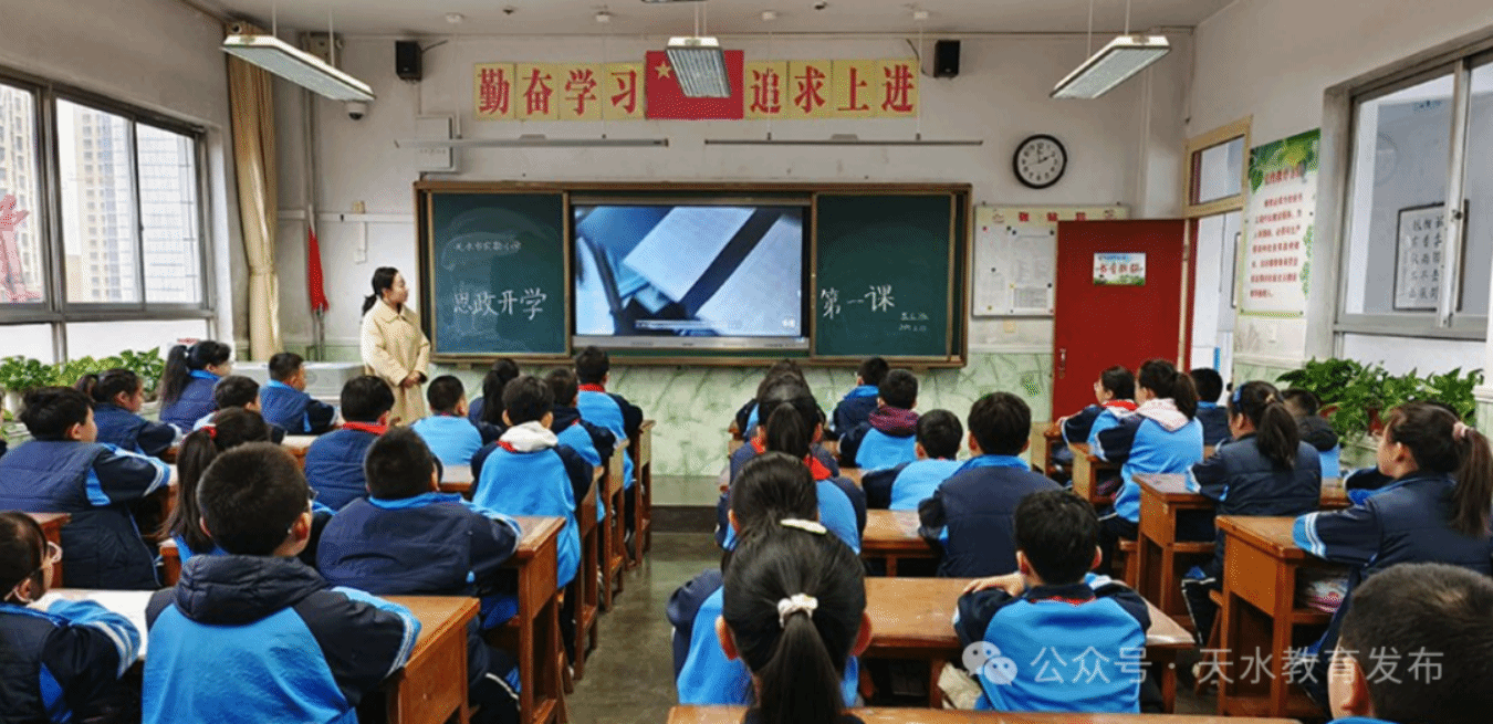 伴随着清脆的上课铃声,开学第一课正在天水市实验小学进行。师生们共同观看了录播课,课程内容有唢呐女博士弘扬传统文化的片段、励志故事以及李白吟诗片段……学生们聚精会神,沉浸式体验这场精彩纷呈的文化盛宴。