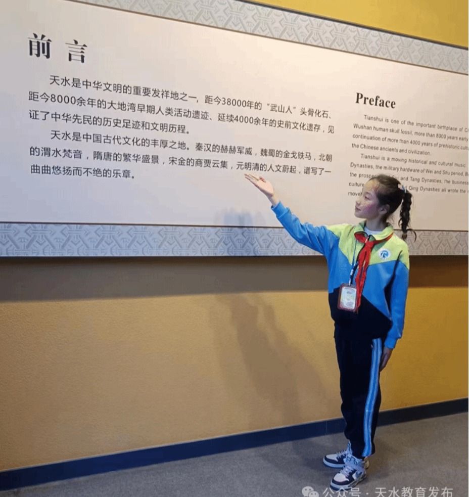 3月31日,麦积区天润学校组织四年级10班中队在天水市博物馆举行了“弘扬天水历史文化,助力天水发展,红领巾在行动”主题队会活动,少先队员在博物馆里当起红领巾讲解员,为游客义务讲解天水博物馆现存传统文化记载和文物古迹,助力天水“麻辣烫”出圈。