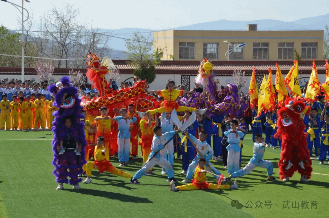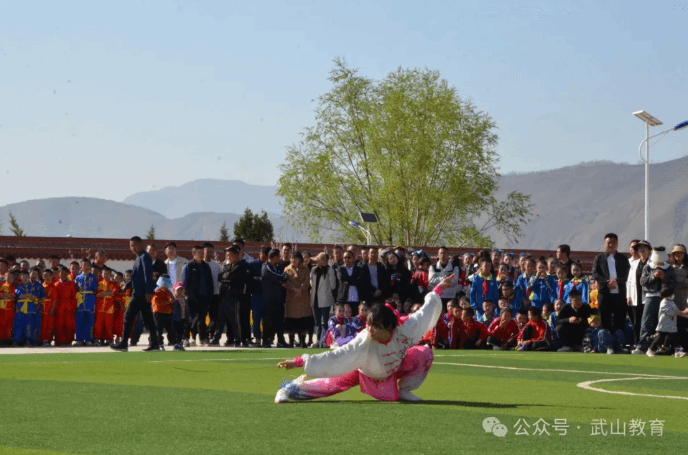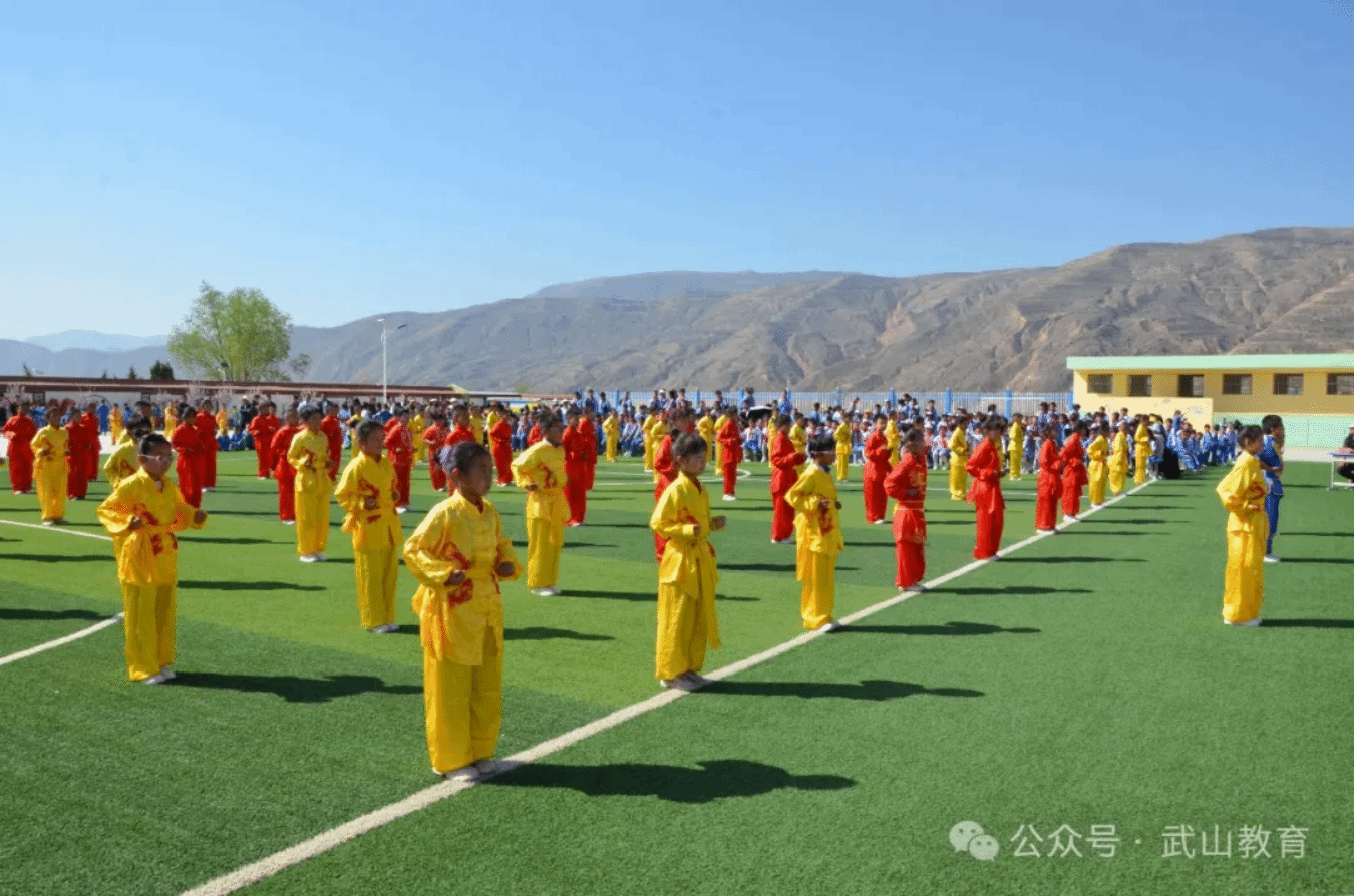 表演伊始,来自各个学校的优秀体育教师展示了他们精湛的武术技艺。他们时而跳跃,时而旋转,或快速或沉稳,身体灵活,动作如行云流水,充满了力量和美感。赛场上,学生们身着色彩鲜艳的武术服装,英姿飒爽。他们整齐划一地排列成各种阵型,仿佛一幅流动的画卷。他们的眼神坚定而专注,每一个动作都充满了力量和自信。