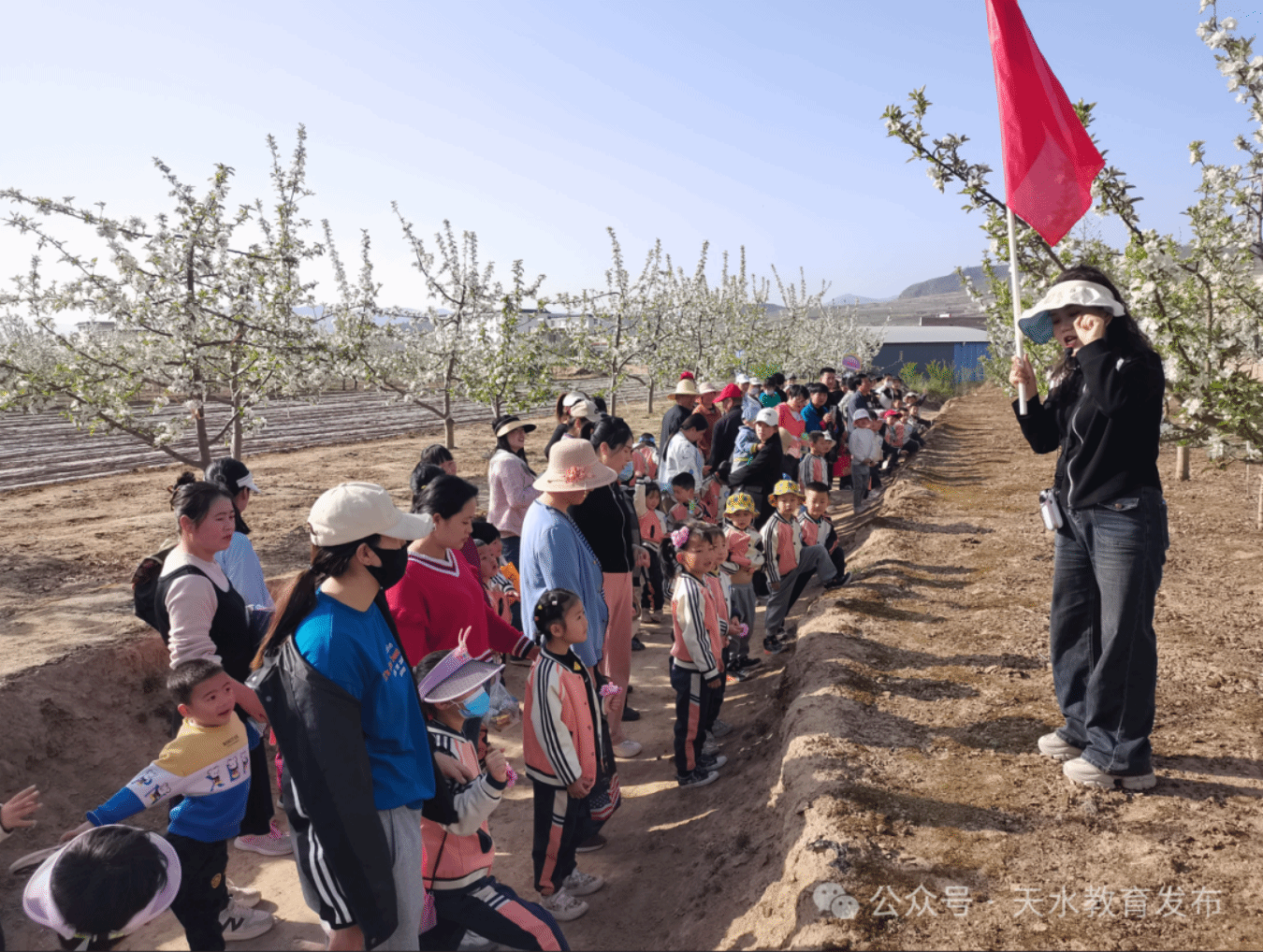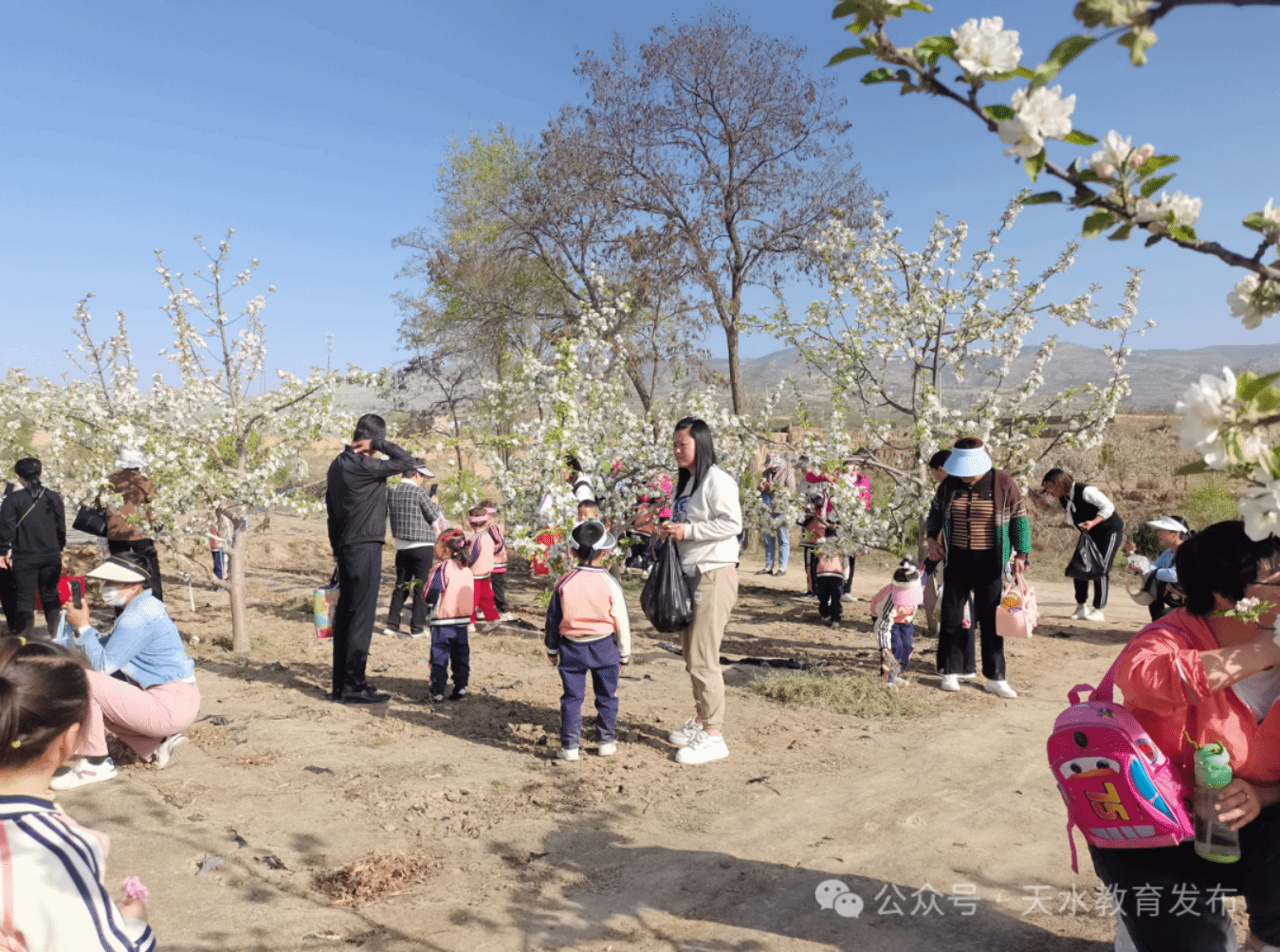 道路两旁开满了苹果花、梨花、桃花……小朋友们抑制不住内心的喜悦,一边欣赏着四周的美景,一边与家长谈论着自己的发现,细心寻找着春天的足迹,悉心感受着春天的气息,真心探索春天的秘密。在与大自然的亲密接触中,处处留下了小朋友们如银铃般欢快的笑声。