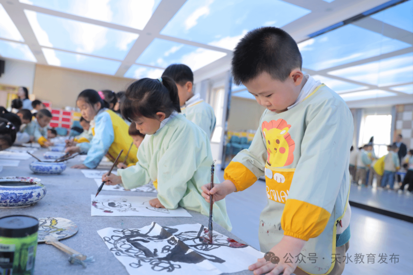 该园副园长邵幼萍介绍,在历时半月的作品筹备中,544名幼儿全员参与,共创作出4000余幅作品。老师白天辅导孩子创作,下午孩子离园后进行规划布展,给每一个板块都赋予了极尽可能的光彩,旨在通过孩子稚嫩的笔触和手法,描绘清水县城的缤纷春色,展现中国传统艺术的韵味与魅力,同时唤醒孩子更加多元、新颖的艺术表现手法,激活水墨画艺术的生命力。