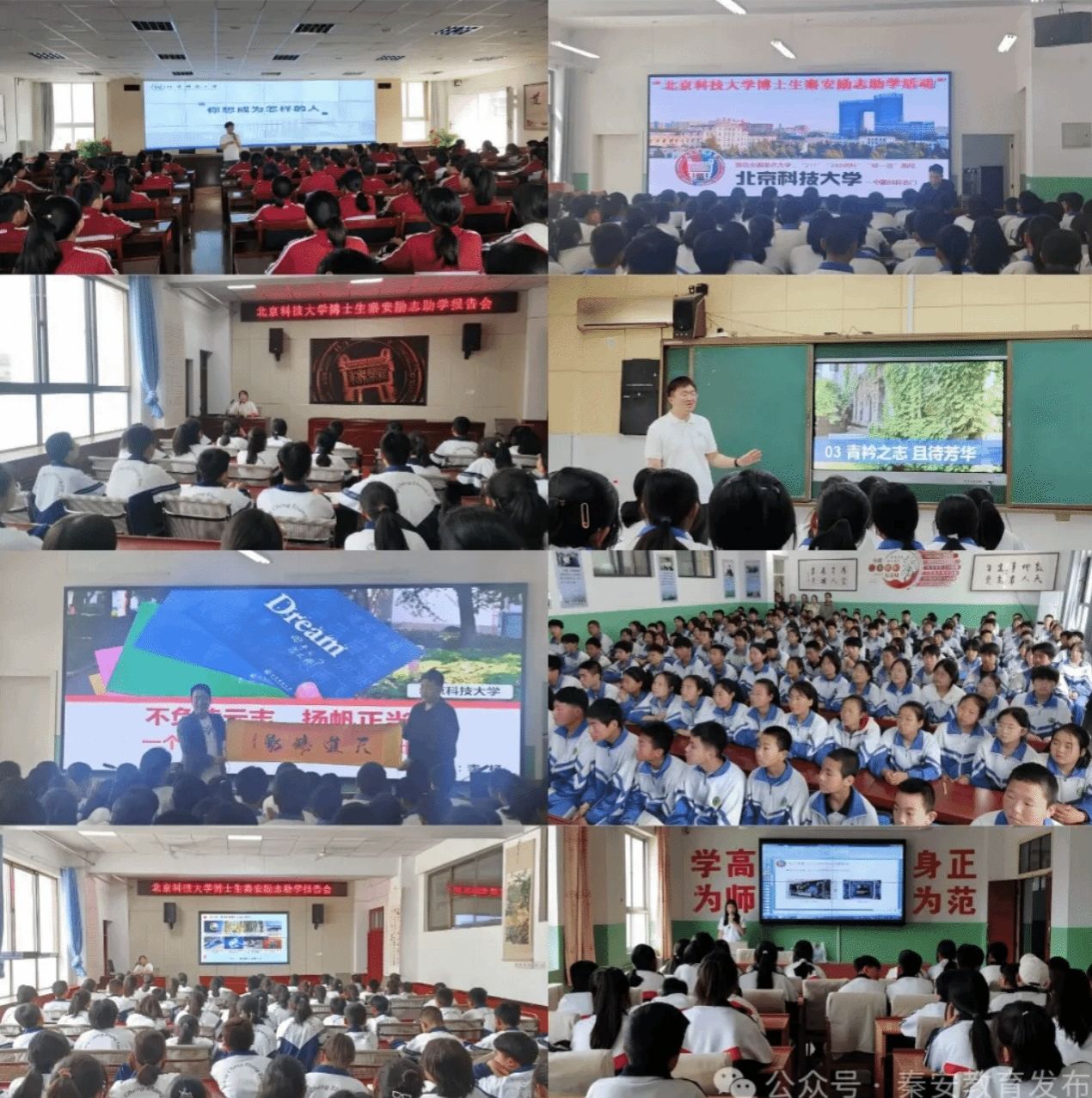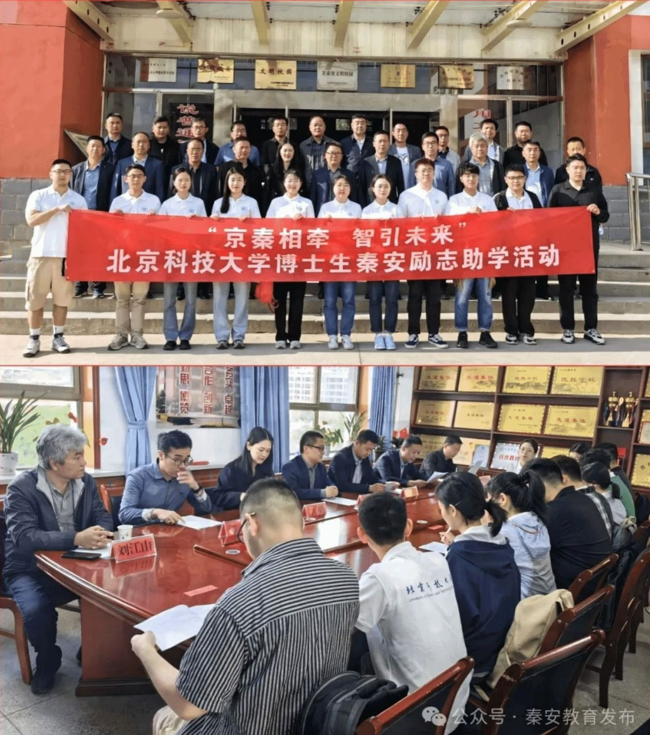 为深入贯彻落实中央单位定点帮扶工作要求,发挥北京科技大学资源优势,提高我县青少年科学素质,激发学生对科学研究的兴趣和热情。5月9日,“京秦相牵 智引未来”励志助学活动启动仪式在桥南中学举行。北京科技大学学生学习与发展指导中心办公室主任李娟,学生学习与发展指导中心教师谭天以及11位博士研究生。秦安县人民政府副县长、北京科技大学帮扶办公室主任景鹏,县政府副县长郑博,县委教育工委书记、教育局党组书记、局长宋健强,县教育局副局长吕东林,兴国镇康坡村第一书记刘江山以及全县部分初中学校校长30余人参加启动仪式。