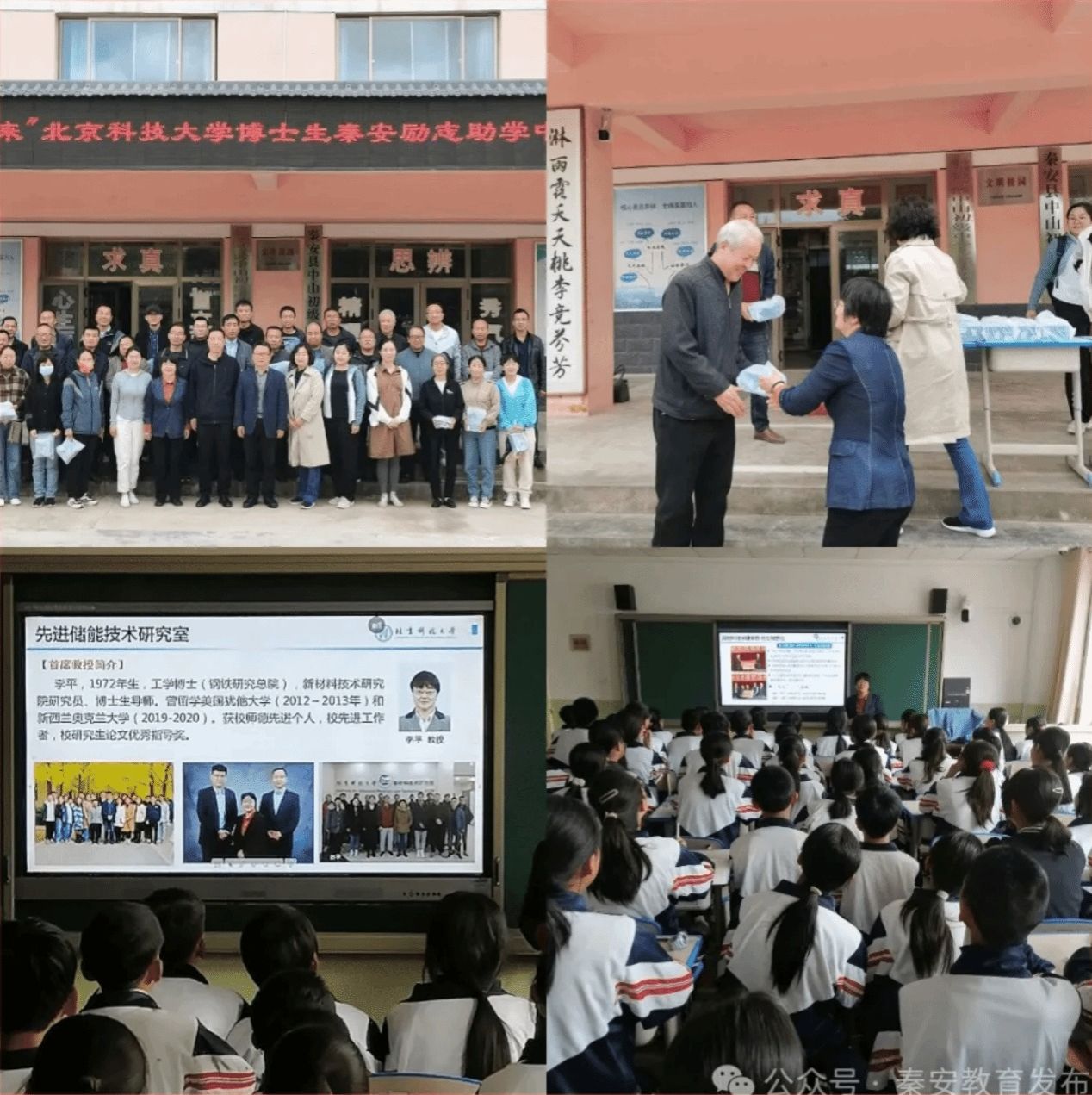 在中山中学的活动中,北京科技大学新材料技术研究院副院长康军艳,新材料技术研究院教授李平, 新材料技术研究院正科级组织员、党委秘书夏青, 新材料技术研究院教学秘书王咏雪,新材料技术研究院团委书记杨雨月为全体教师捐赠50部教学扩音器,总价值2.46万元,助力学校科学教育事业的发展。李平教授为学生们带来了一场主题为“新能源与材料”的精彩科普讲座,让学生们对新能源和材料科学有了更加深入的了解。