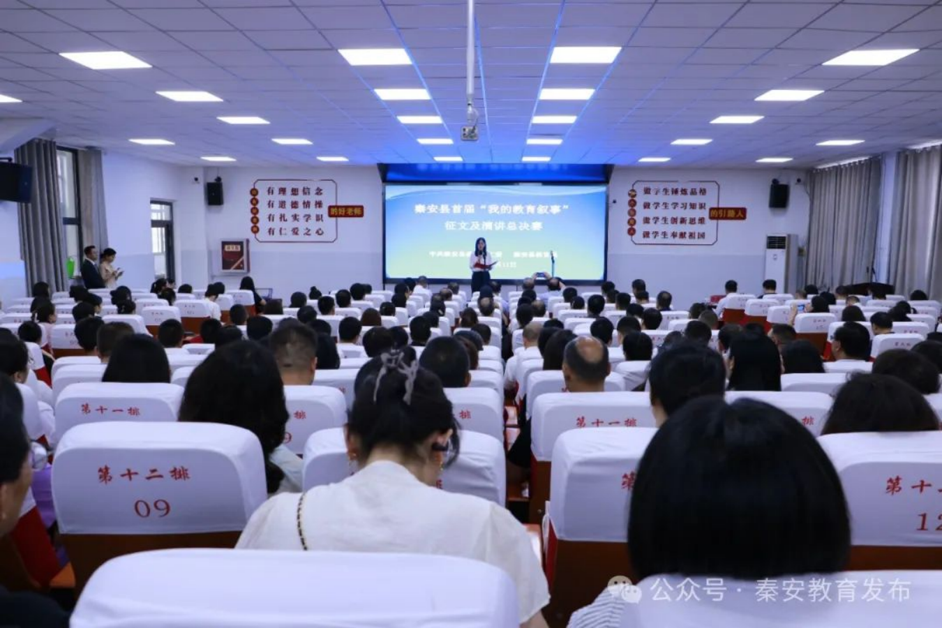 为深入学习贯彻习近平新时代中国特色社会主义思想,大力弘扬教育家精神,展示我县校长和教师队伍精神风貌和使命担当,激励广大教师坚守为党育人、为国育才初心,提升校长组织管理能力和教学指导水平,促进校际交流和各类学校优质均衡发展。7月11日—12日,秦安县“我的教育叙事”征文演讲大赛暨校长论坛决赛活动在县第四中学举行。县委常委、宣传部部长马昊莹参加决赛启动仪式并致辞;县政府副县长景鹏、郑博参加了颁奖仪式。县教育局领导班子及相关股室负责人,全县中小学、幼儿园负责人及家长代表280余人现场参加决赛活动。