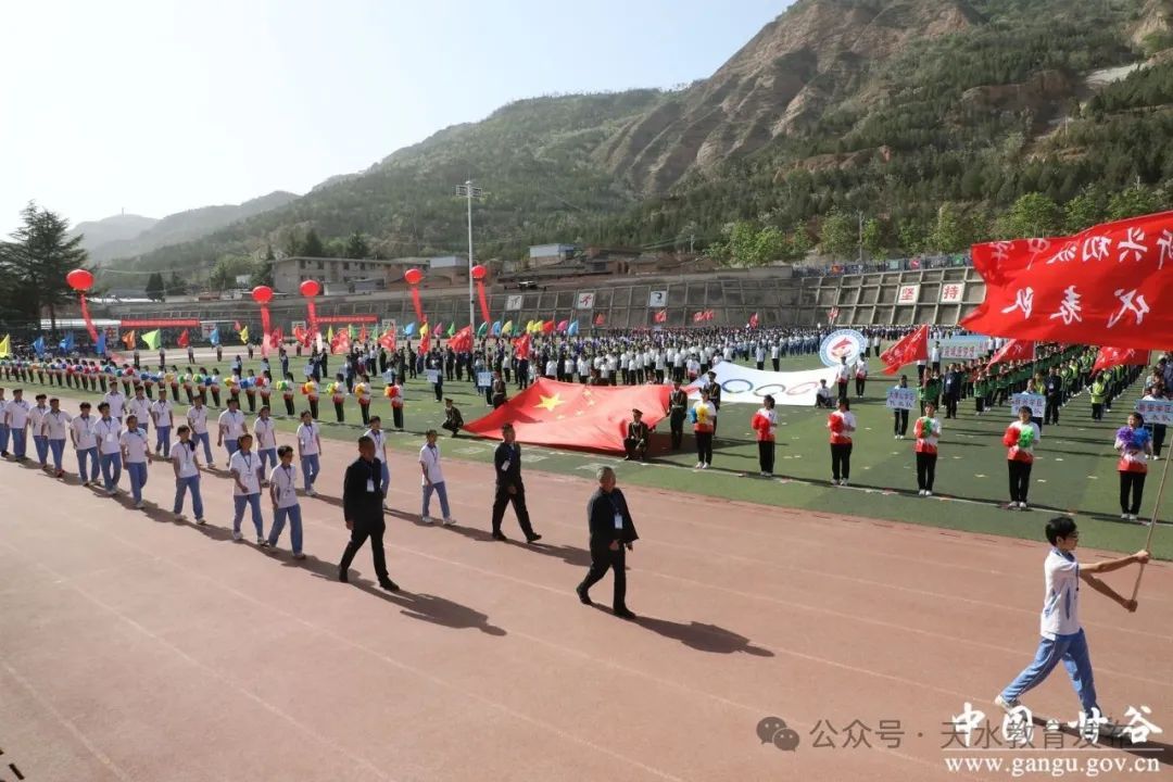 初夏的甘谷,生机盎然,风景如画;绿茵的操场,人声鼎沸,活力飞扬。5月9日,甘谷县2025年中小学生田径运动会在甘谷一中体育场开幕,本次运动会不仅是深入贯彻落实习近平总书记关于教育的重要论述、积极响应全国教育大会关于树立“健康第一”教育理念的生动实践,也是践行体育强国梦、持续巩固“双减”政策、坚持“德智体美劳”五育融合发展理念的一次生动呈现,集中展现了全县中小学校体育事业发展成果、师生体育素质与精神风貌。