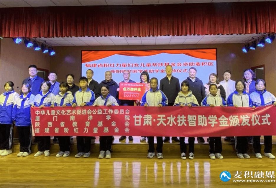 麦积区融媒体中心讯(记者 王雯 吴雪镕)10月20日,福建省粉红力量妇女儿童帮扶基金会资助麦积区新阳镇困难学生助学金发放仪式顺利举行。市、区两级相关领导及部门负责人出席发放仪式,新阳中学、温集初中、胡大小学受助学生和家长代表150余人齐聚现场,共同见证这份爱心与希望的传递。