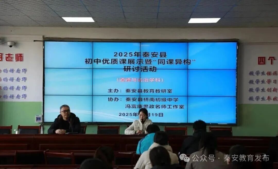 为持续提升我县初中课堂教育教学效果,切实减轻初中阶段学生学业负担,提高课堂教学效率与质量,激发学科教师探索课堂教学创新活力,充分发挥优秀教师的引领示范作用,促进教师专业成长。近日,县教育局组织开展2025年秦安县初中优质课展示暨“同课异构”研讨活动。