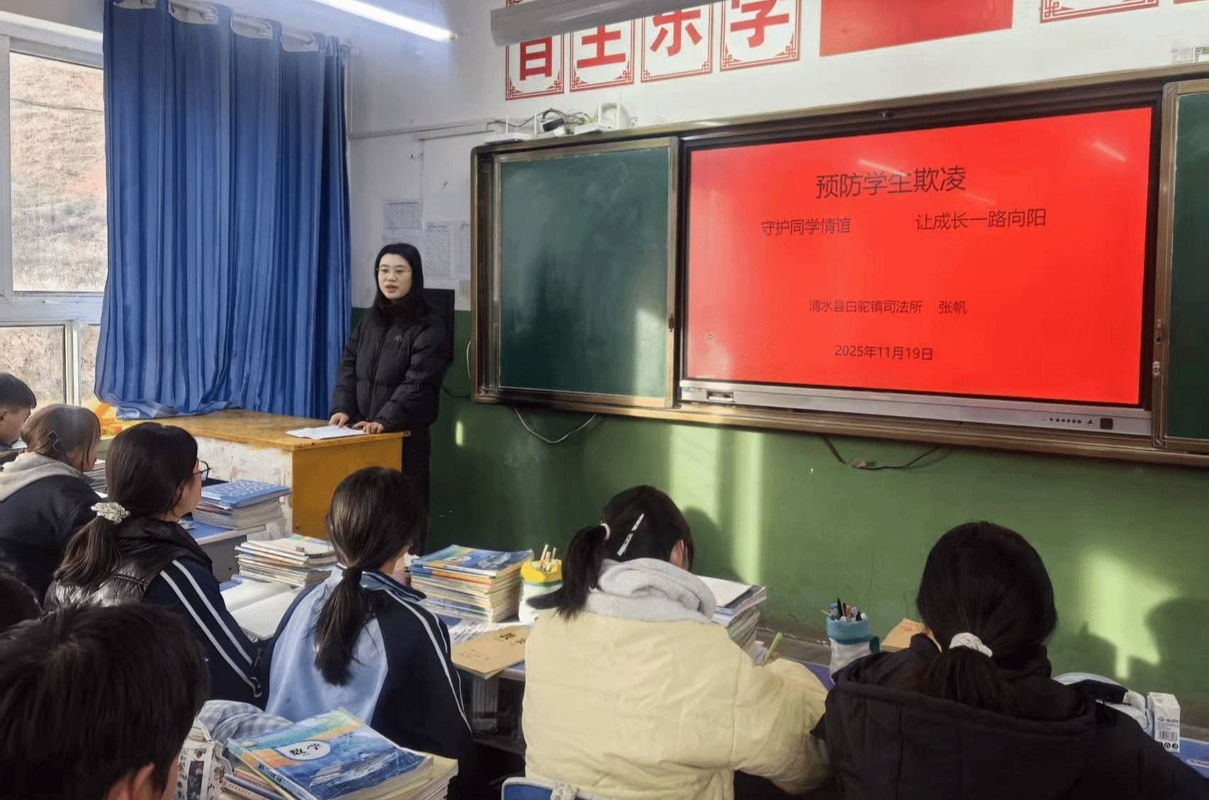 为进一步强化青少年的法治观念和安全意识,有效预防和处置校园欺凌事件,筑牢和谐健康的校园安全防线,近日,清水县司法局白驼司法所联合镇综治中心走进清水县第四中学,为在校师生带来了一场主题鲜明、内容充实的反校园欺凌专题法治宣讲会,让法治的种子在青少年心中落地生根。