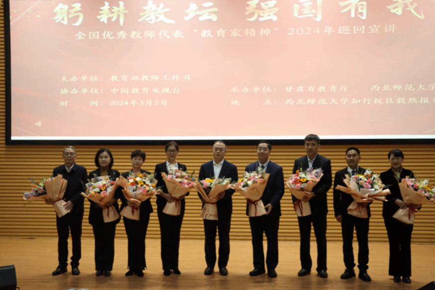 3月2日,全国优秀教师代表“教育家精神”2024年巡回宣讲报告会在西北师范大学举行。