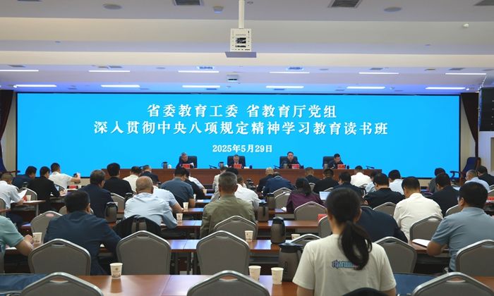 5月29日,省委教育工委、省教育厅党组举行第四次深入贯彻中央八项规定精神学习教育读书班集中学习。