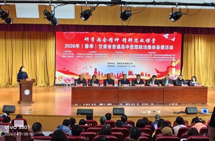 4月11日至12日,2026年(春季)甘肃省普通高中思想政治集体备课会在嘉峪关市酒钢三中顺利举行。本次活动由省委教育工委、省教育厅指导,甘肃省大中小学思政课一体化建设指导委员会普通高中“思想政治”分教学指导委员会主办,以“研学两会精神·精耕思政课堂”为主题,紧扣大中小学思政课一体化建设要求,旨在推动2026年全国两会精神与思政课程标准深度融入教学实践,充分发挥思政课立德树人关键作用。