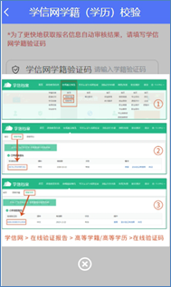 (2)在校生可点击“如何获取验证码?”查看如何从学信网获取学籍网学籍/学历验证码的示例截图,请务必输入正确的学籍网学籍/学历验证码。