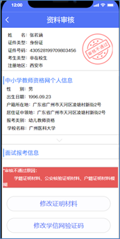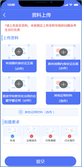 提交资料后,请耐心等待审核结果。(待审核、审核通过、审核不通过)。