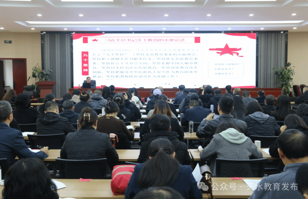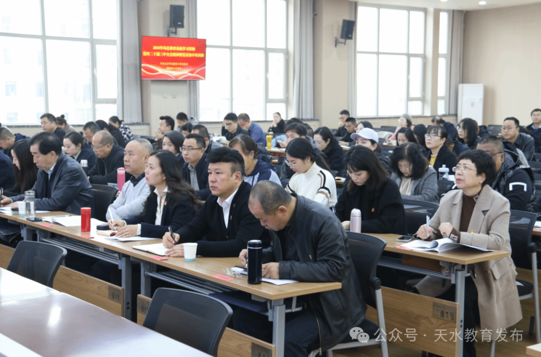 培训中,市委教育工委书记、市教育局党组书记、局长杨瑞峰作了《全面领会党的二十届三中全会精神,深化教育综合改革,奋力推动天水教育高质量发展》专题辅导。专题辅导围绕深刻理解“党的二十届三中全会和全国教育大会精神,明确今后我们‘改什么’”、“围绕天水教育发展实际,前期我们‘改了什么’”、“聚焦建设高质量教育体系,未来我们还要‘怎么改’”等方面,深入浅出地阐述了深化教育综合改革的重要意义,天水教育综合改革的主要做法以及立足天水教育现状,提出天水教育改革的思路举措。杨瑞峰强调,局直教育系统党员干部要讲求学习质效,努力学深悟透党的二十届三中全会和全国教育大会精神;要提升工作能力,学习领会掌握教育强国建设的一系列新思想、新观点、新论断,破解教书育人中的难点问题;要认真履职尽责,贯彻落实好大会精神,努力把学习成果转化为推动天水教育高质量发展的路径举措。
