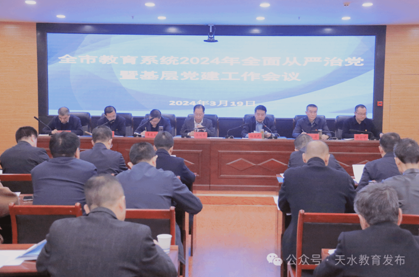 会议强调,2024年是新中国成立75周年,是推进天水教育“十四五”规划实施的关键一年,全市教育系统要把习近平总书记关于党的建设的重要思想和关于教育的重要论述作为做好基层党建的总遵循、总依据、总指引,坚决扛起管党治教政治责任,严格落实全面从严治党总要求,着力推动基层党建重点任务落实落细。要筑牢政治建设“压舱石”,讲政治、抓学习、促发展,把党的政治要求和政治建设贯穿到教育工作全过程各方面,持续加强党对教育工作的全面领导。要把好引领发展“方向盘”,巩固中小学校党组织领导的校长负责制改革成果,不断完善运行机制,全面加强团结协作,凝聚推动学校发展的强大合力。要建强基层基础“主阵地”,在健全组织体系、夯实基层基础、推动创新融合、从严管理党员上持续用力,切实提升基层党建工作质效。要固牢铸魂育人“生命线”,全面提升思政教育质量,持续加强思政建设保障,牢牢守好意识形态阵地。要绷紧纪律作风“警戒线”,以更加强烈的担当落实政治责任,以常抓不懈的精神加强作风建设,以动真碰硬的决心从严执纪问责,持续巩固风清气正育人生态。