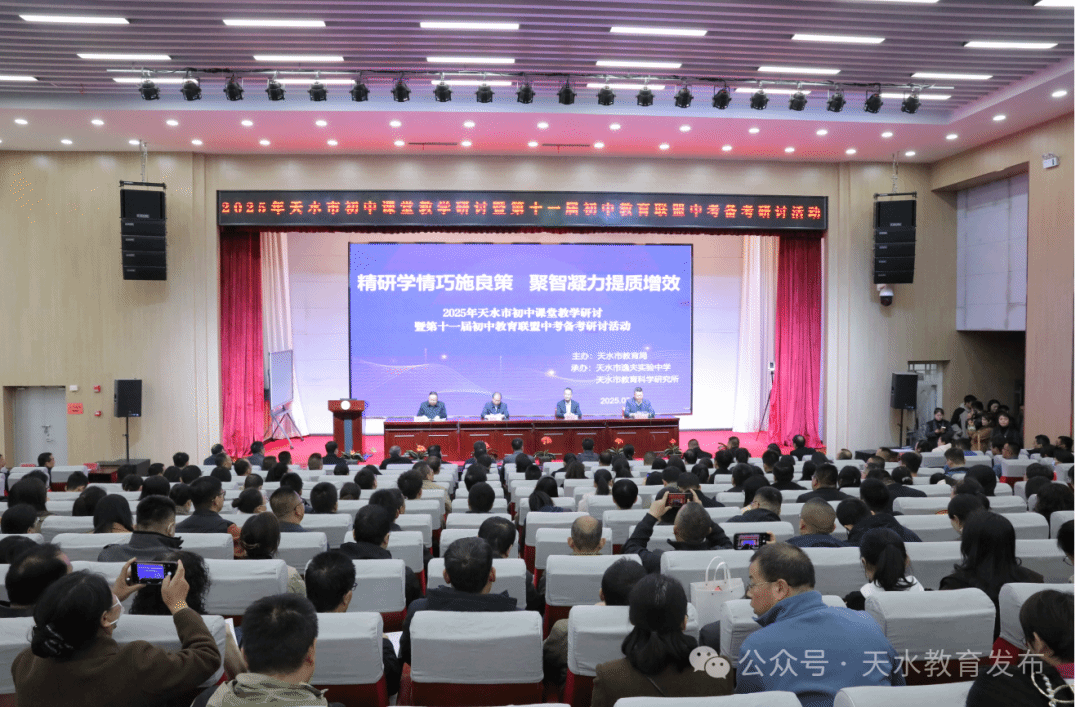 3月22日,天水市举办2025年天水市初中课堂教学研讨暨第十一届初中教育联盟中考备考研讨活动,进一步厘清备考思路、把牢备考方向、找准备考方法、提升中考备考质量。天水市委教育工委书记,市教育局党组书记、局长杨瑞峰出席开幕式并讲话。