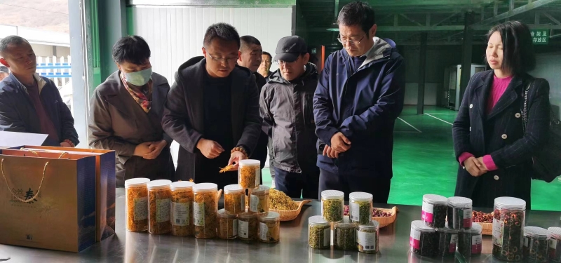 调研组一行先后实地考察了天水康乐源农业开发有限公司秦岭山脉道地药材野生驯化及种子种苗繁育;天水古丰生态农业基地引进的大叶艾草种苗种植;天水兴华荣生态农业基地引进的金银花、连翘、五味子、黄精、金丝皇菊等中药材;秦岭镇中药材种植基地野生连翘标准化种植等。