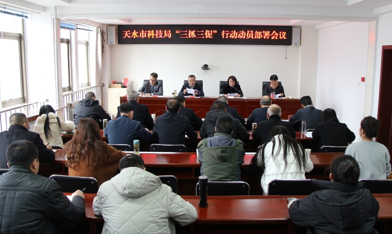 会议传达学习了全省“三抓三促”行动动员部署会议精神和《天水市“抓学习促提升抓执行促落实抓效能促发展”行动实施方案》,解读了《天水市科学技术局“三抓三促”行动实施方案》。