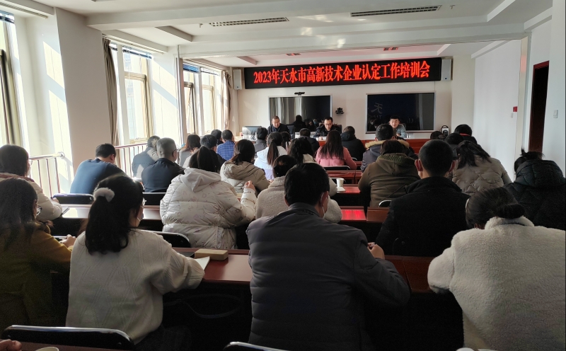 2月3日下午,市科技局组织召开2023年度高新技术企业认定工作培训会,邀请甘肃省生产力促进中心张小荣部长专题辅导,天水27家重新认定的企业参加培训。