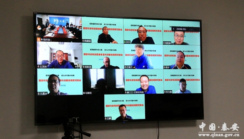 3月25日,秦安县召开国家乡村振兴科技特派团帮扶对接视频会议。国家苹果产业技术体系首席科学家、西北农林科技大学教授马锋旺等科技特派团人员,秦安县委副书记姚建国及县直相关部门负责人参加会议。