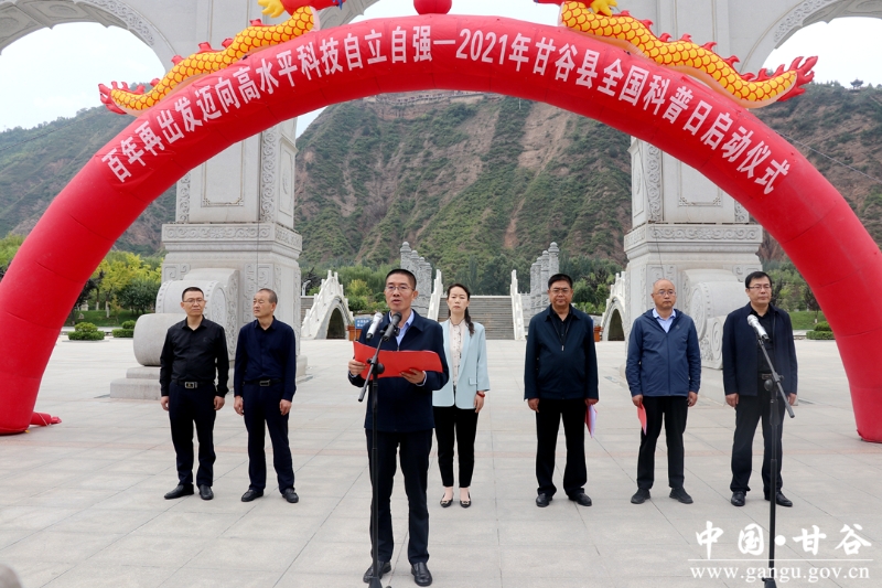 9月16日,甘谷县在大像山水上公园举行以“百年再出发,迈向高水平科技自立自强”为主题的全国科普日活动启动仪式。县委常委、宣传部部长王亚梅宣布活动正式启动,副县长牛武军讲话,县政协副主席蒋文宣读《甘谷县2021年“全国科普日”活动方案》,县人大常委会副主任颉明军主持启动仪式。