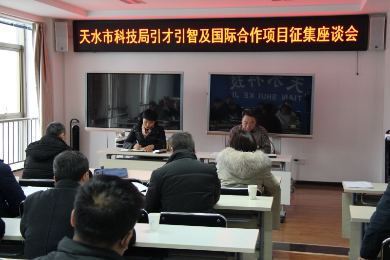 2020年12月28日,天水市科技局召开引才引智及国际合作项目征集座谈会。邀请我市有引才引智及国际合作项目申报意向的15家科研单位、企业进行座谈交流。