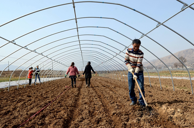 近日,甘谷县新兴镇崖湾村村民正在地里耕种。