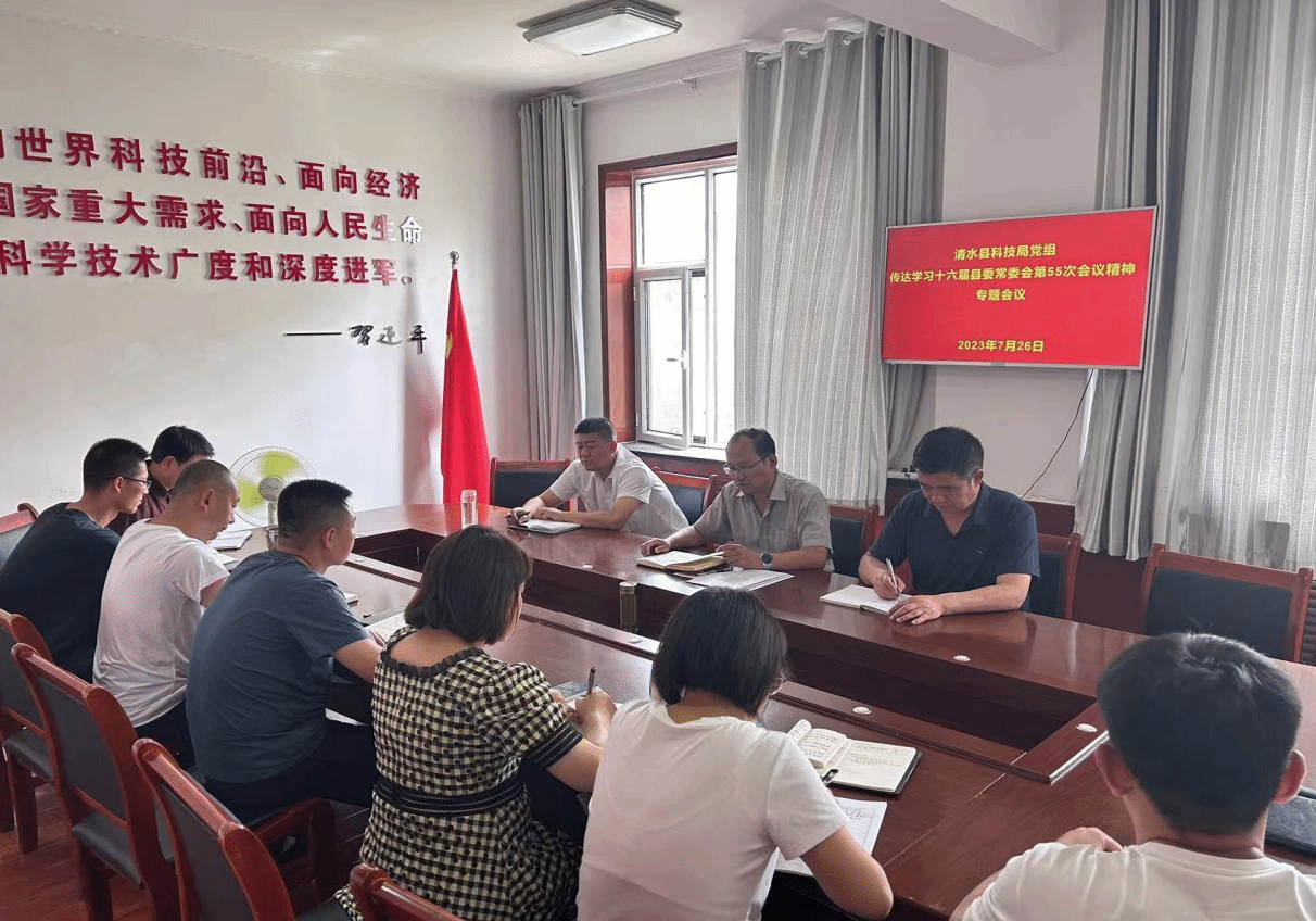 会上全面传达学习了十六届县委常委会第55次会议精神、习近平总书记在全国生态环境保护大会上的重要讲话精神、习近平总书记在江苏考察时的重要讲话精神、习近平总书记在中共中央政治局第六次集体学习时的重要讲话精神、7月24日中共中央政治局会议精神及《中共甘肃省委、甘肃省人民政府关于建立健全安全生产体系的意见》,对推进当前全县有关重点工作及科技创新业务工作进行了再安排、再部署。