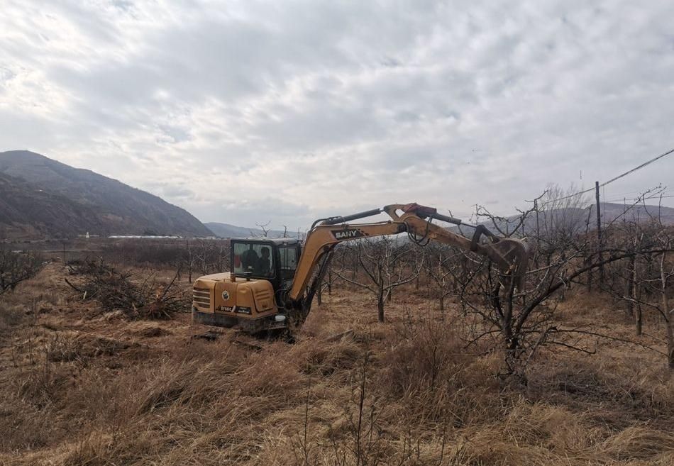 在侯滩村老旧果园里,一派热火朝天的繁忙景象,大型挖机正挥舞着有力的臂膀,铲除老旧果树、清理枯枝、开挖丰产沟。果农们一边指挥挖机精准作业,一边交流对果园的未来规划,眼中满是期待。今年叶堡镇计划在侯滩村实施老旧果园改造1000余亩,在新阳村改造100余亩种植北京七号蜜桃,在金城村改造100余亩种植富士苹果。自去年11月份以来,叶堡镇多次组织召开党委会、镇村干部会、群众说事会等会议进行研究部署、宣传动员、考察学习、排查摸底和布局规划等前期准备工作。目前挖除老旧果园如火如荼,同步进行地块平整,为全年老旧果园改造工作奠定坚实的基础。