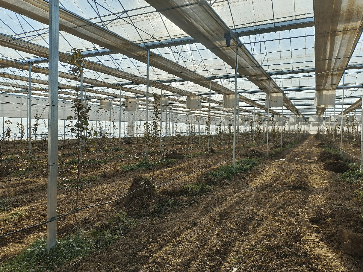 项目精选2年生M9-T337砧木苗木,在天水镇杨湾村采用“棚内+露天”对比栽培模式,建设7亩标准化试验点。试验以本地主栽品种“红富士”为对照,旨在筛选最适宜本地的优良品种,并总结配套栽培技术。栽植后,技术人员通过及时补水、定干抹芽、涂白防寒及根部覆土等系列措施,有效抵御了冬季低温,确保苗木栽植成活率达85%以上。同时,制定专项管护细则,完成初期整形与清园预防工作,针对棚内外不同环境,分别采取保温防护与秸秆覆盖等差异化防寒措施,保障所有试验苗木安全越冬。进入2026年春季,项目组紧抓萌芽关键期,实施品种差异化修剪,统一增施有机肥以优化地力,制定预案防范倒春寒。同步启动年度常态化性状观测,精准记录各品种物候期与生长数据,建立完整试验台账,为科学评价品种适应性奠定基础。