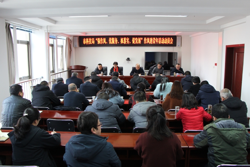 会议传达学习了全市“强作风、优服务、抓落实、促发展”作风建设年活动动员会议精神,宣读了《市科技局开展“强作风、优服务、抓落实、促发展”作风建设年活动工作方案》,对全局开展作风建设年活动进行了全面安排部署。