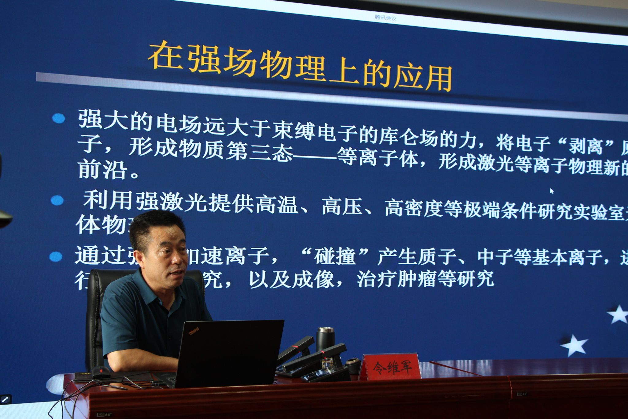令维军教授围绕“激光产生、应用及物理前沿研究”这一主题,从光本性问题的探索、激光产生原理、激光最新应用、超强超短激光脉冲产生及对物理前沿的推动作用等几个方面进行了深入讲解。整个专题报告主题鲜明、内容丰富、深入浅出,大家一致表示通过令教授通俗易懂、精辟透彻的讲解,进一步深刻理解激光产生、应用及物理前沿研究等科学技术的发展,对科技干部在今后强化科技创新、助推产业发展、培育新质生产力必将起到很好的推动作用。