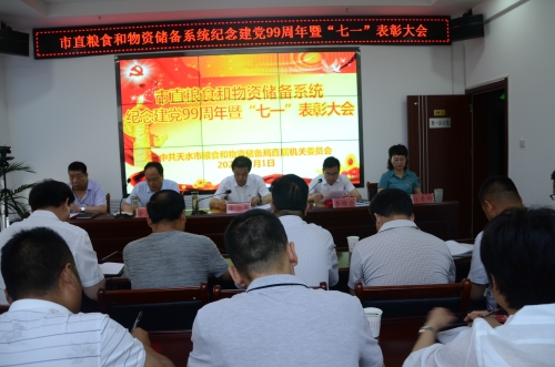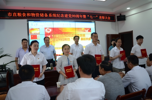7月1日,市直粮食和物资储备系统举办了庆祝建党99周年暨“七一”表彰大会,活动以回顾党的发展历程、重温入党誓词、表彰先进典型的形式开展,进一步动员和激励广大党员干部不忘初心、牢记使命,积极担当新时代粮食和物资储备改革发展的重大责任和历史使命,积极在深入推进粮食储备体制机制改革中做合格党员,在破解全市粮食流通改革发展难题中做合格党员,在服务种粮农户、服务粮油经营者、服务粮油消费者中做合格党员,在推动行业转型发展中做合格党员,在推进落实粮食安全省长责任制和“粮安工程”“智慧粮食”“法治粮食”建设中做合格党员,在加快构建现代化储备安全保障体系中做合格党员,在推动天水区域粮食仓储物流生态产业园项目建成达效中做合格党员。