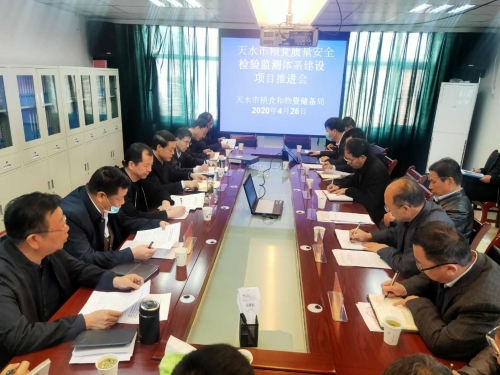近日,市粮食和物资储备局党组书记、局长李尚平在秦州区粮油购销总公司藉口储备库主持召开局党组(扩大)会议,专题研究天水市粮食质量安全检验检测体系项目建设工作事宜。局党组成员、副局长李维岳,屈东明,令天成参加会议。