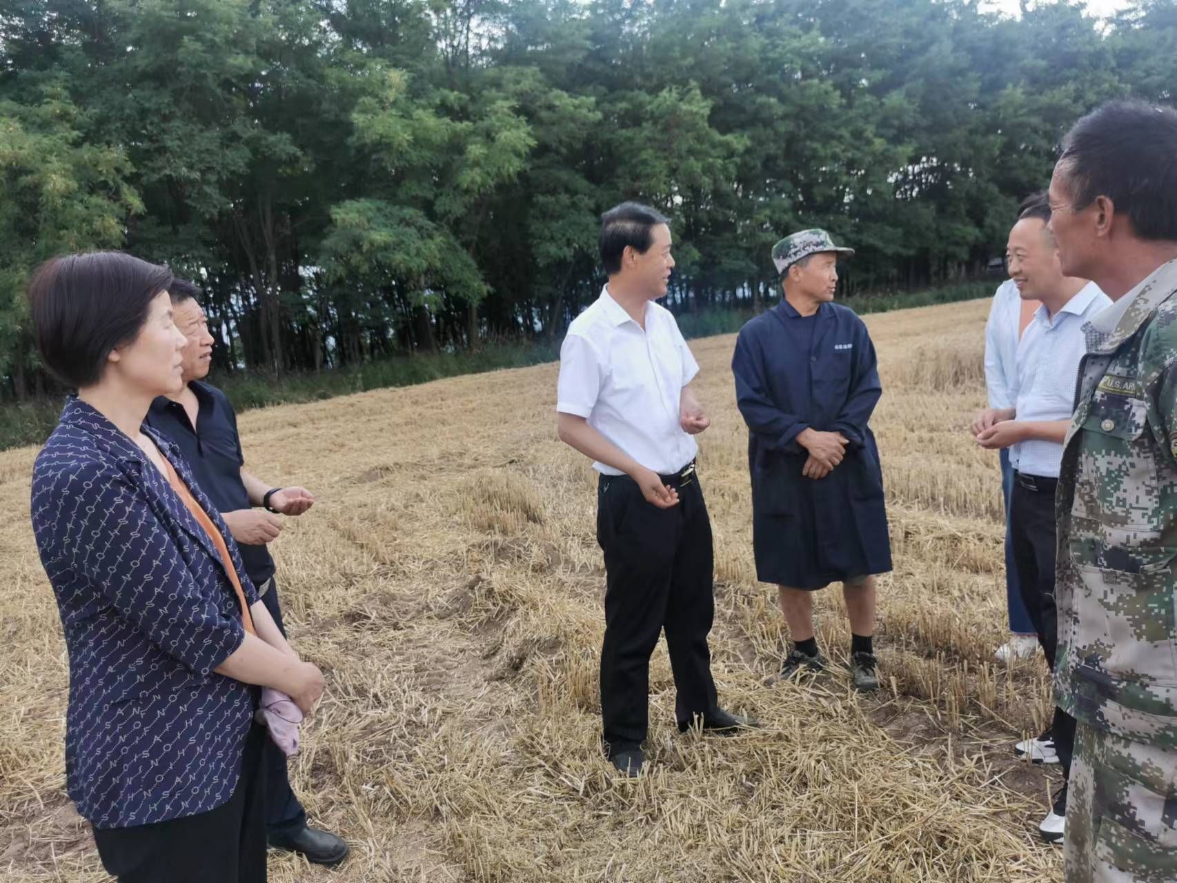 在天水市佳禾稼农机服务农民专业合作社小麦种植基地,调研组详细了种植面积、亩产数量、小麦品质及销售情况,现场与合作社负责人、国有粮食企业负责人就“合作社+基地+企业”订单种植进行了深入交流,为深入贯彻国家粮食收购政策,增加农民收入,进一步助推乡村振兴战略实施提供有力支撑。
