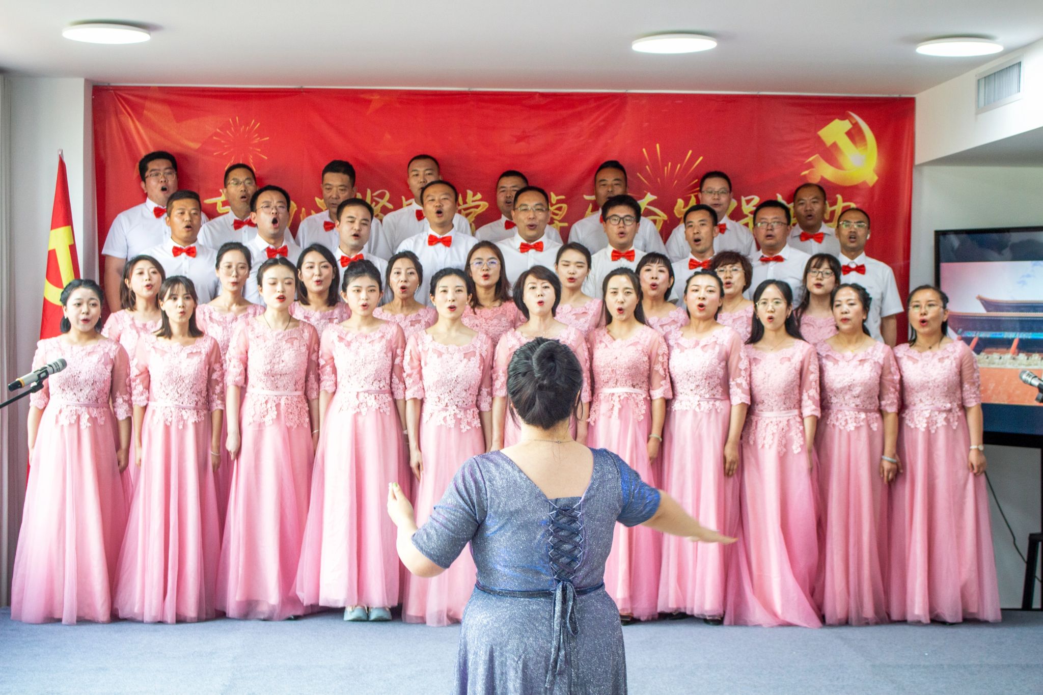 演出在大合唱《我和我的祖国》中拉开帷幕。诗朗诵《吹号者》《青春中国》《不负时代勇担当,争做粮储追梦人》,重温峥嵘岁月,感受革命先辈追逐复兴的民族呐喊,传承革命精神,赓续红色血脉,展现新时代粮储青年紧随党的步伐不负时代、勇毅前行;葫芦丝吹奏《月光下的凤尾竹》和二胡独奏《我和我的祖国》,表达了对祖国美好的祝福,祝愿祖国繁荣昌盛;歌曲《灯火里的中国》《如愿》《中国人》《不忘初心》,用真挚的情感抒发了中国人顽强拼搏、守望相助、无私奉献的高尚精神;舞蹈《万疆》用优美的舞姿诉说出祖国万里疆土的磅礴气势,使大家的爱国情怀和民族自豪感油然而生;一套帅气的《擒敌拳》完美的展现了全系统干部职工昂扬向上、朝气蓬勃的精神风貌。最后,演出在大合唱《游击队歌》《向往》中落下帷幕。