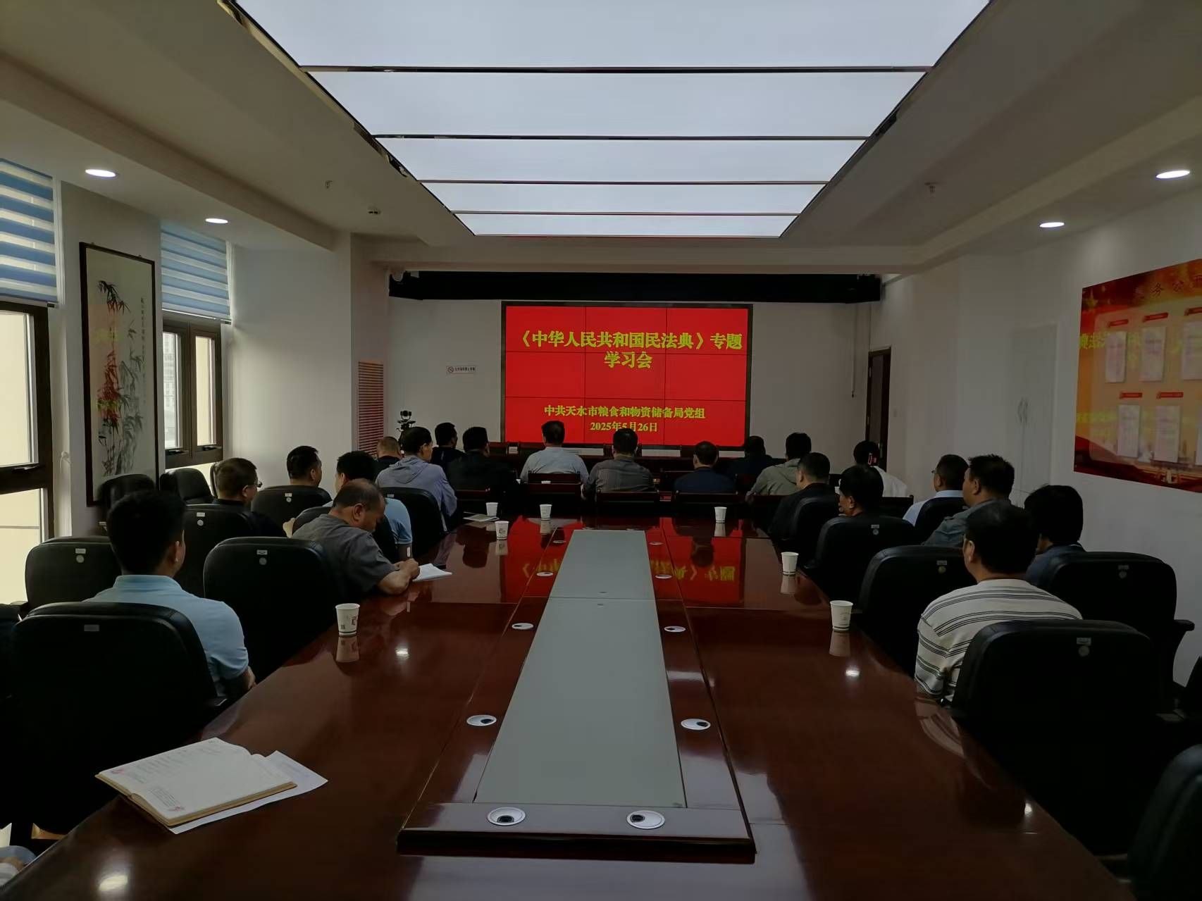 2025年5月是第五个“民法典宣传月”,为深入学习贯彻习近平法治思想,持续夯实粮食安全法治根基,提高粮储系统干部职工遵法、学法、守法、用法意识,5月26日,市粮食和物资储备局召开专题学习会集中学习《中华人民共和国民法典》。