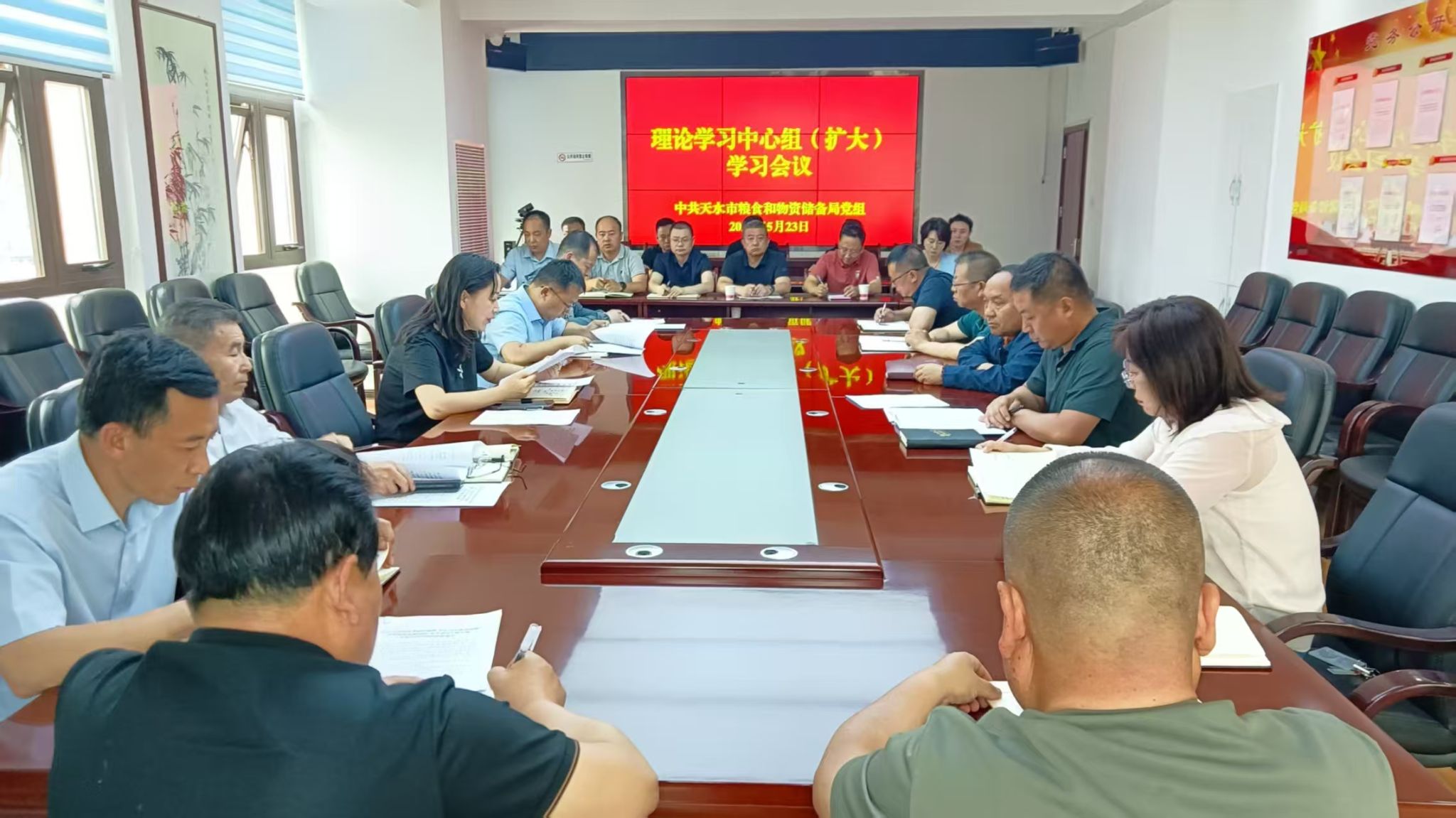 5月23日,天水市粮食和物资储备局召开理论学习中心组2025年第6次学习(扩大)会议。局主要负责人主持会议,市粮食和物资储备局机关、市粮食和物资保障中心全体干部职工及下属企事业单位班子成员40余人参加。